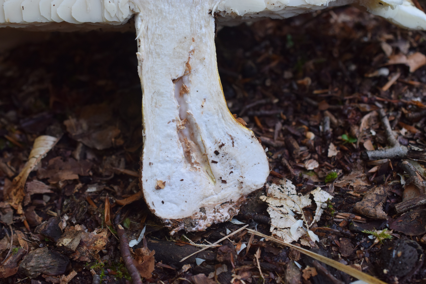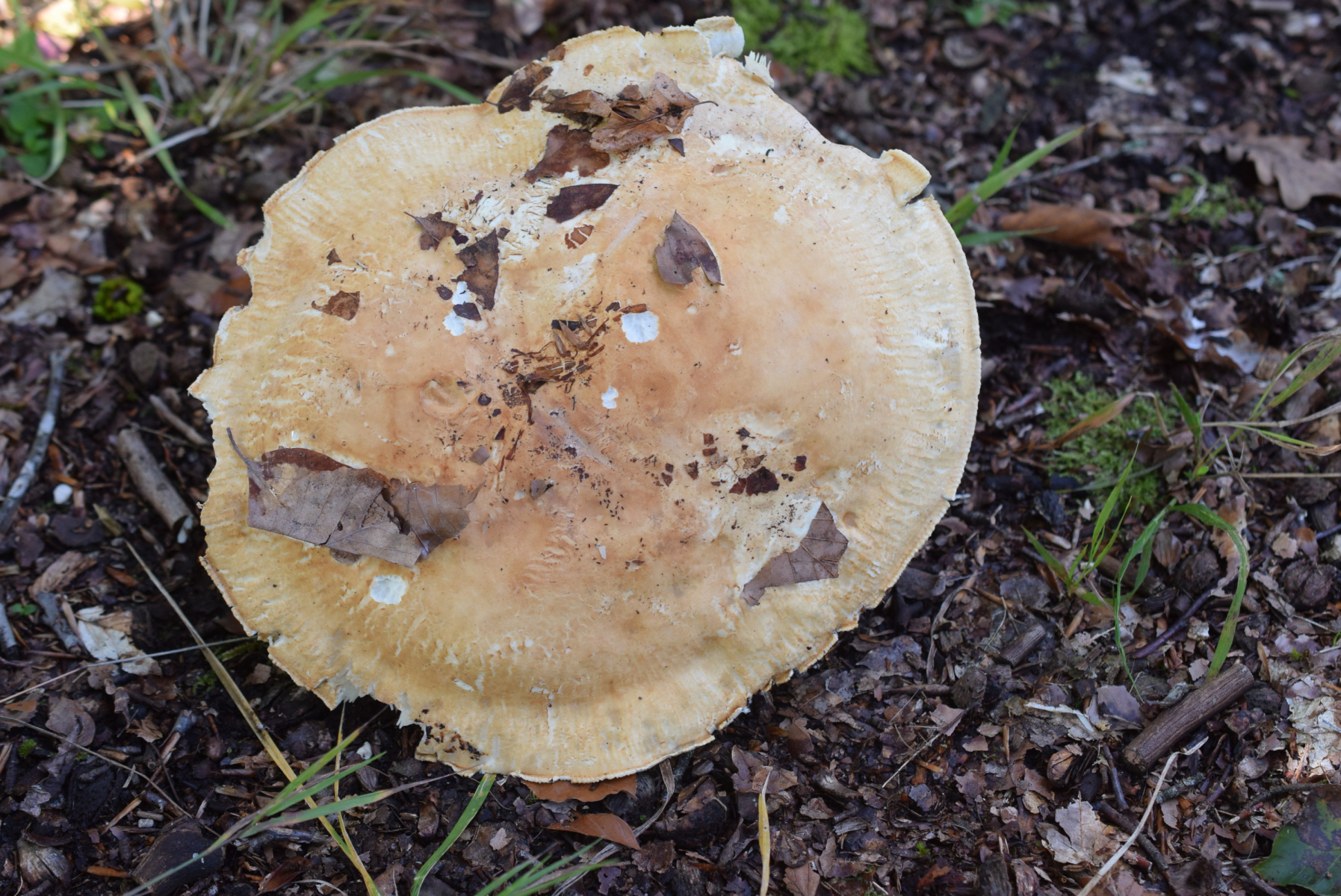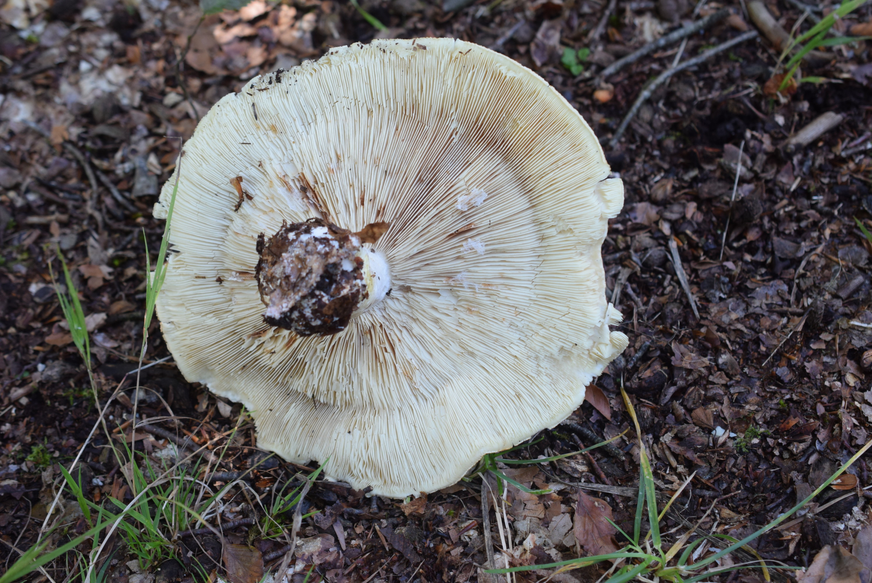 Aus meiner sicht passt das schon zu älteren und voll aufgeschirmten Leucopaxillus compactus / tricolor.