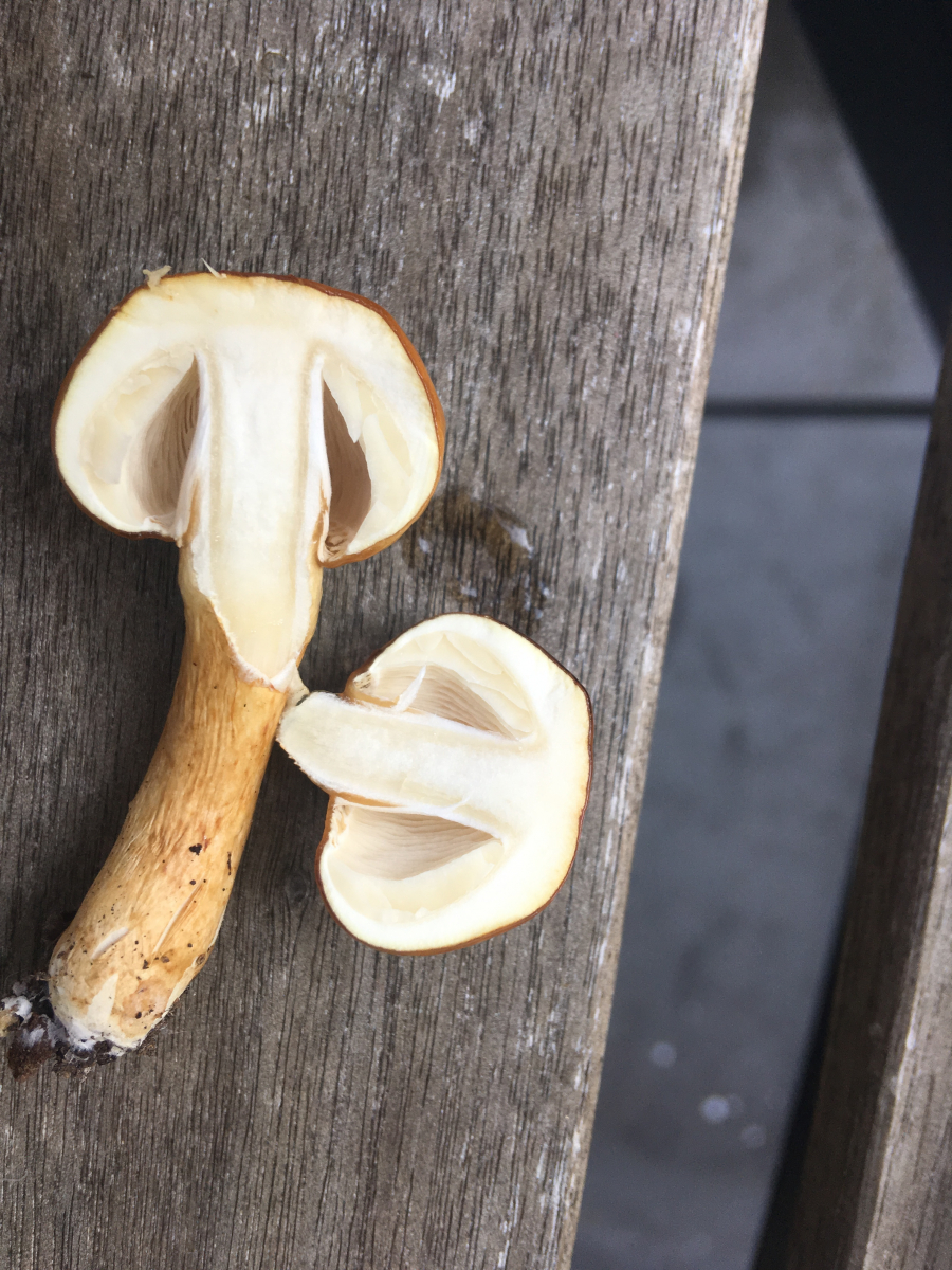 Phaeolepiota aurea jung und etwas zu nass darum so komisch schaut