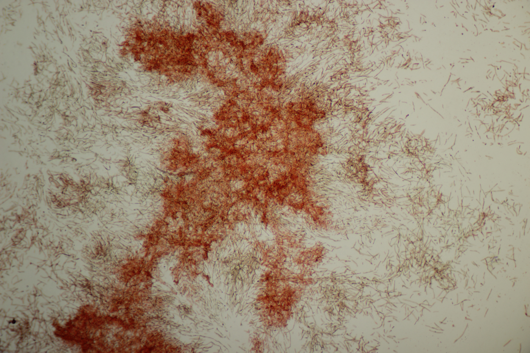 Mit Guayak nach 20 Sekunden blau, mit Eisensulfat leicht rosa