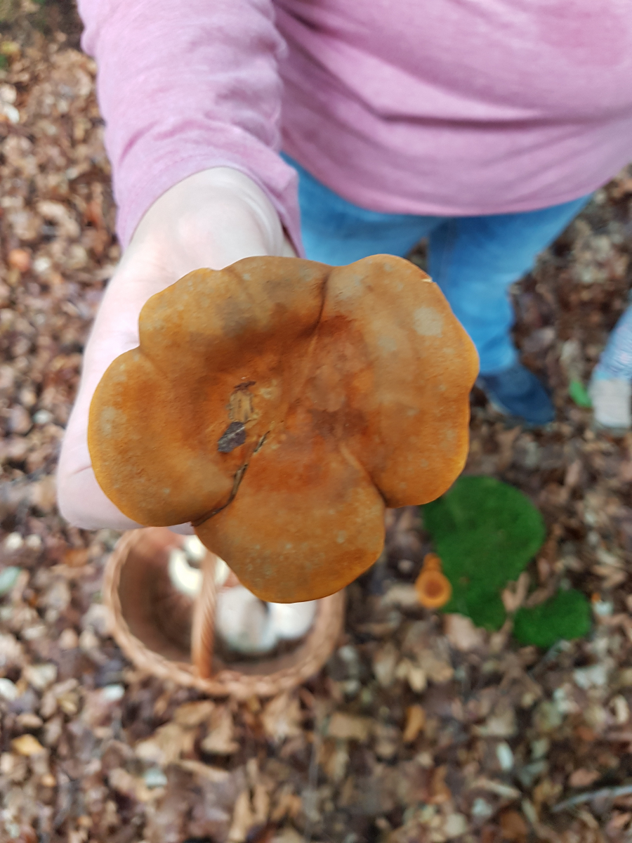 Pilz 2: Kann ein Ölbaumtrichterling so aussehen? Diese leichte Zonierung u. die Ähnlichkeit zum Pfifferling?