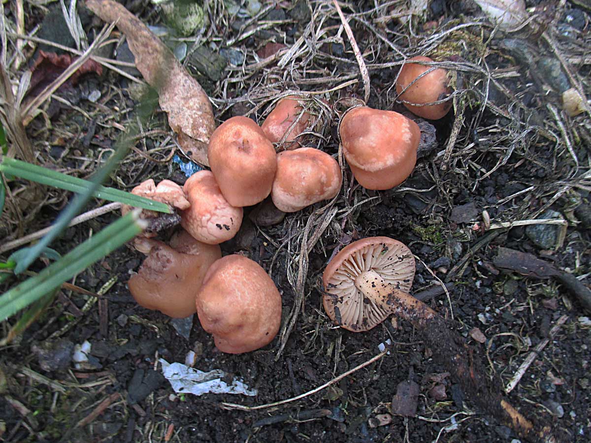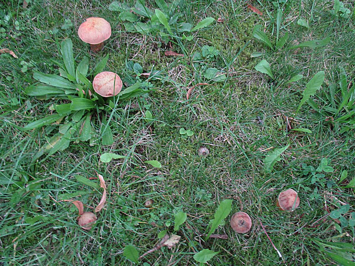 Als erstes begrüßte mich ein kleiner Trupp vom Rosascheckigen Milchling (Lactarius controversus)
