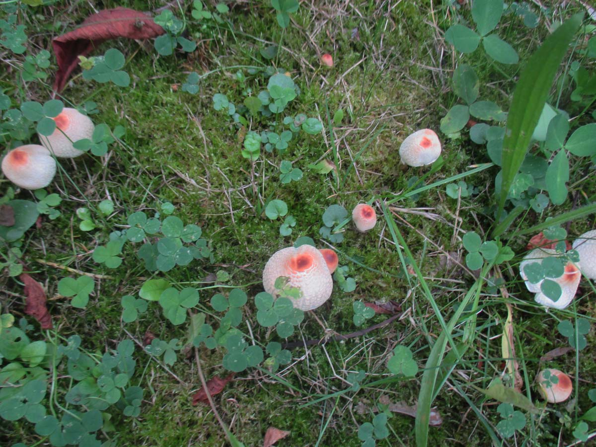 Zu guter Letzt entdeckte ich auch noch diese nach Bittermandel riechende Minichampis mit einer Größe von 3 cm. Ich würde die gern Ockergelbe Zwergchampigions (Agaricus lutosus) nennen, sicher bin ich mir da aber nicht.