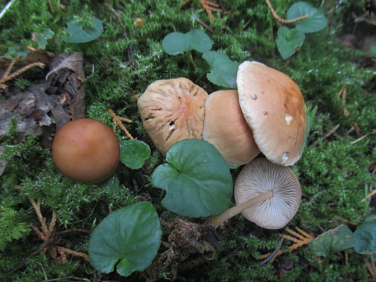 Als erstes begrüßte mich ein kleiner Trupp vom Rosascheckigen Milchling (Lactarius controversus)