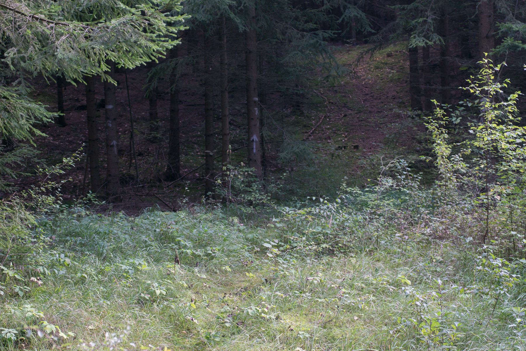 Habitat: (Lärche, Kiefer, Fichte überwiegend) stand zwischen Wiese und Baumbeginn: