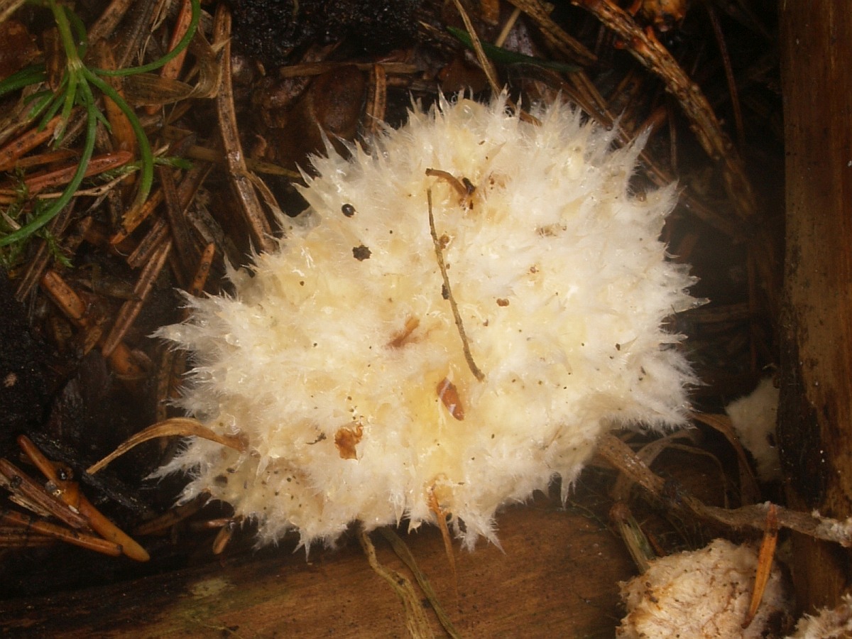 Hübsch anzusehen ist immer der Weiße Polsterpilz (Oligoporus Ptychogaster)