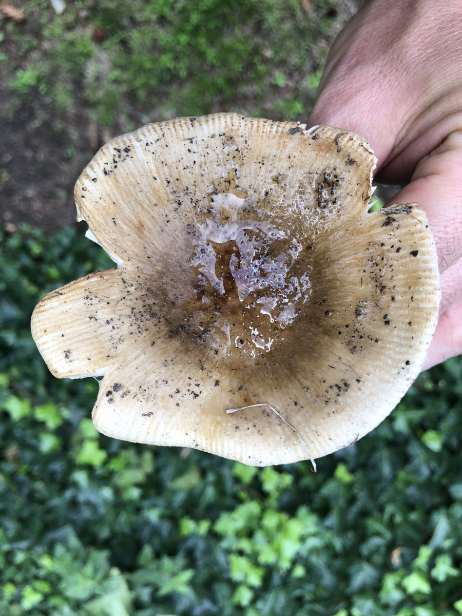 Sieht aus wie einer der Stinketäublinge.Ausgehend von der schmierigen Huthaut, der deutlichen Riefung und dem wattig gekammerten Stiel.
