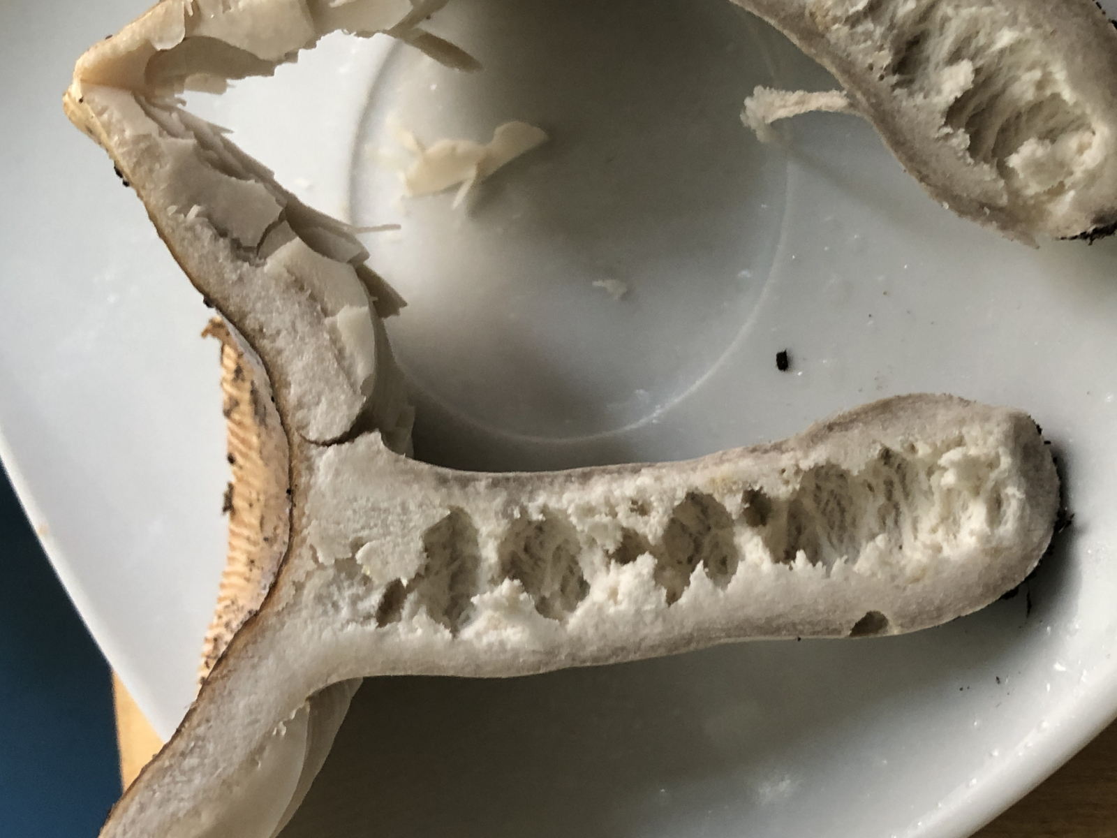 Sehr gut auch, dass die Stielbasis gezeigt wurde, die ist mal ganz gelb (R. insignis), mal rostfleckig (R. praetervisa) oder aber farblich unauffällig (so wie hier).