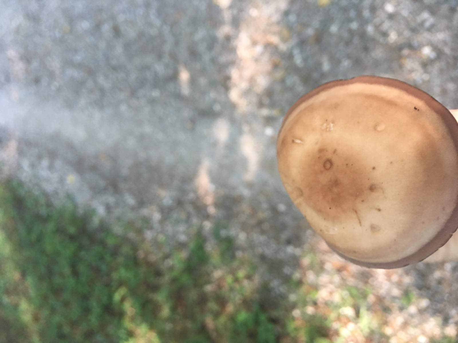 Hab ihn leider nicht absporen lassen. Aber müssten die Lamellen nicht freier sein bei einem Dachpilz. Meiner Meinung sind die hier angewachsen