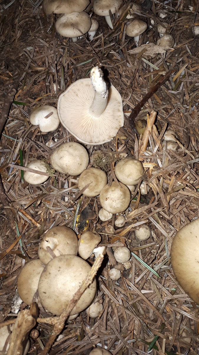 Bei dem graubraunen Hut und dem festen Fleisch musste ich an helle Räslinge denken. Was meint ihr? Im Schatten (im Dunkel) junger Fichten gefunden, büschelig wachsend. Lg