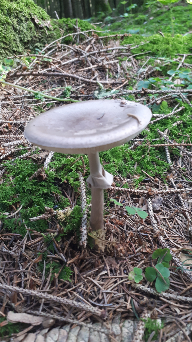 Per Bild ? mir an Monitor schaut so ungewöhnlich verfärbend und kann nicht richtig untere Stielteil sehen , mir schaut so glatt , das ist nicht für A. porphyria typisch aber ? Hat dein Fund grobe (oder Reste) Schuppen - muss stark genattert sein oder Reste ? Auch Pilz stink