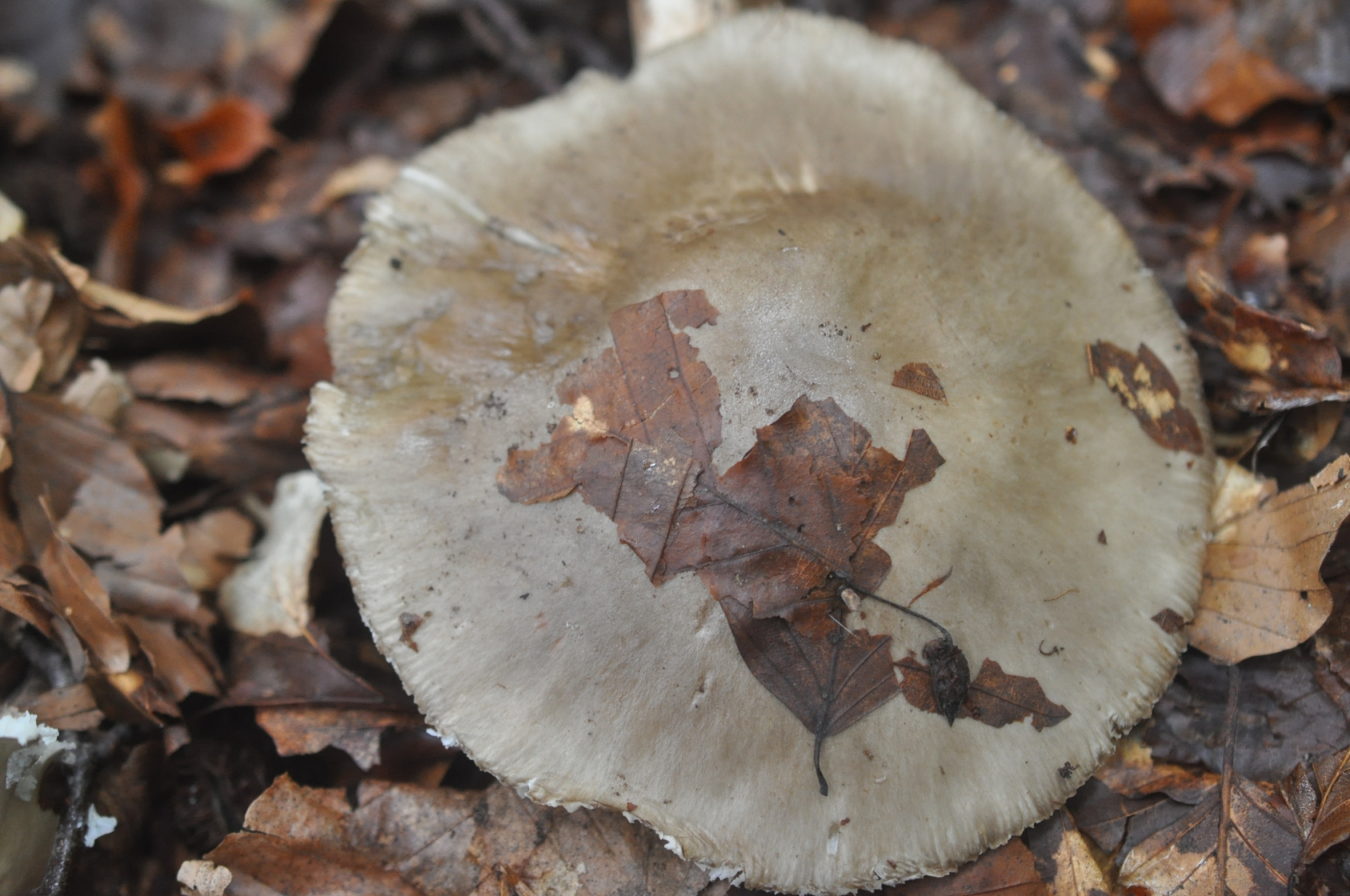 Auf dem Bild nicht zu sehen: Völlig falsche ökologische Voraussetzungen (trockener Südhang, saurer Buntsandsteinboden, sehr nährstoffarm) + Keinerlei grünliche oder grauliche Verfärbungen im Schnitt (Fleisch rein weiß) + keinerlei grüne oder graue oder ockerliche Tönung der Lamellen (auch Sporenpulver im Abwurf rein weiß). Die Struktur des Velums am Hutrand alleine ist aber schon ein Ausschlusskriterium für einen Igel.