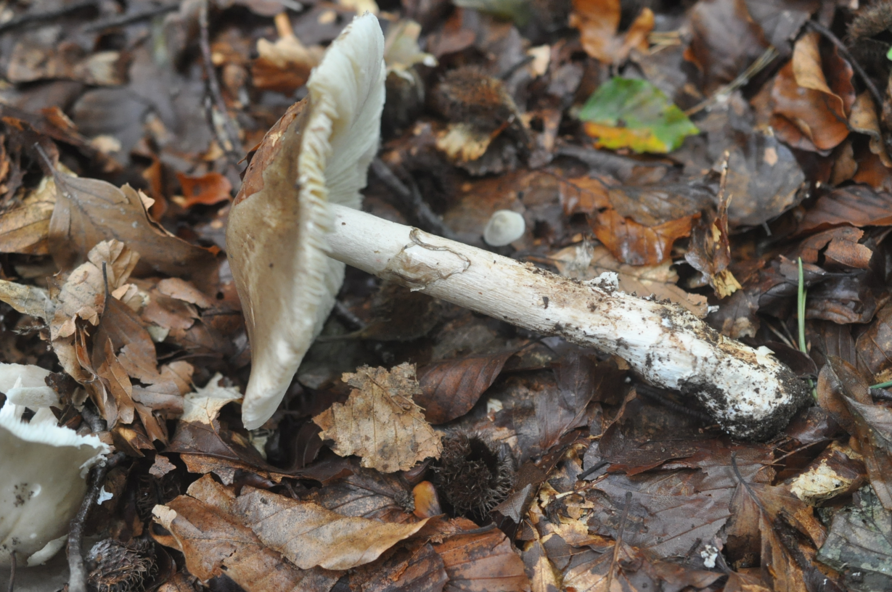 Ich hätte da jetzt eher Zweifel an der Identität deiner Vergleichsbilder, Beli.Die Knolle bei denen schaut doch arg nach Amanita excelsa s.l. (Grauer Wulstling) aus, der auch so einen bräunlich genatterten Stiel bilden kann.