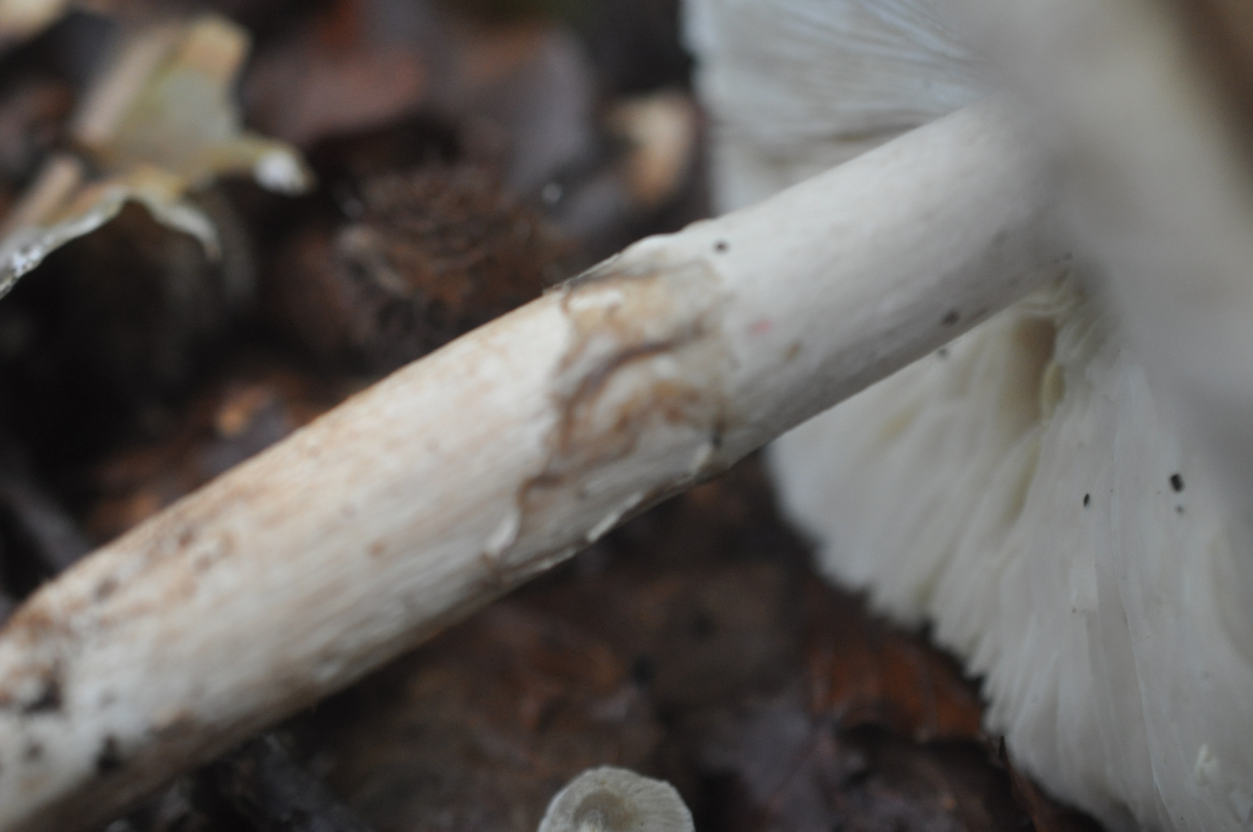 Obwohl die Ringriefung nicht mehr erkennbar ist. Es gibt solche Kollektionen, wo das kaum erkennbar ist, oder nur oben an der Stielspitze ausgeprägt (weil sich das Velum ja auch über dem Ring bis zu den Lamellen hinzieht, oft etwas genattert aufreißend). Da oben kann man auch mal gucken, wenn es am Ring selbst nicht mehr erkennbar ist.
