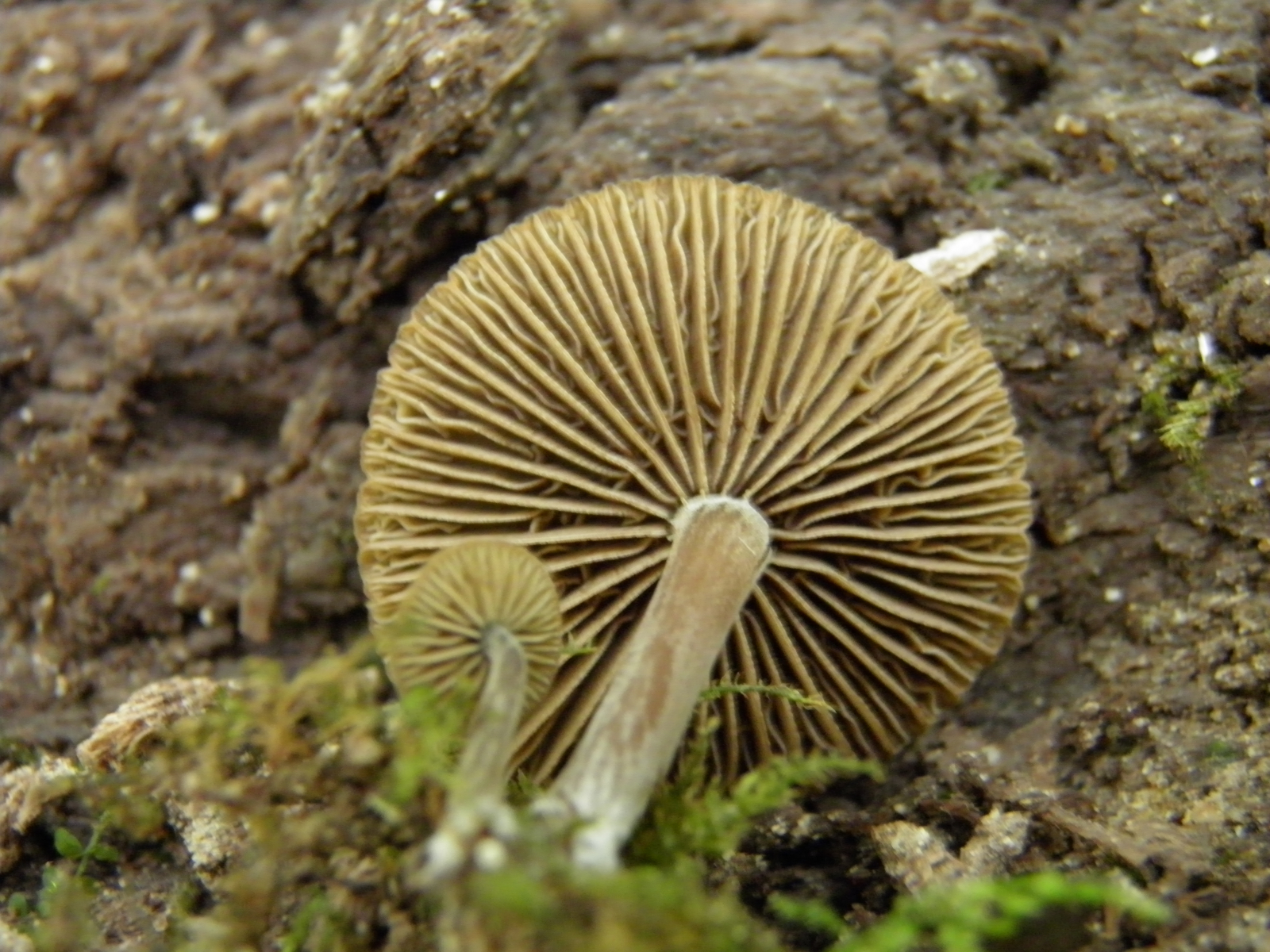 Und der Trompetenschnitzling könnte auch ein Olivschnitzling sein. Welche Art, kann man nur mikroskopisch wirklich sagen, aber die ersten, deutlich oliven könnten Simocybe centunculus sein, der mehr ockerbraunb gefärbte Simocybe sumptuosa - ist aber nur geraten, mehr als "Arbeitstitel" gehen in der Gattung makroskopisch nicht.