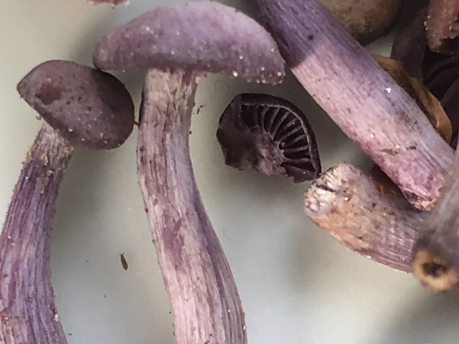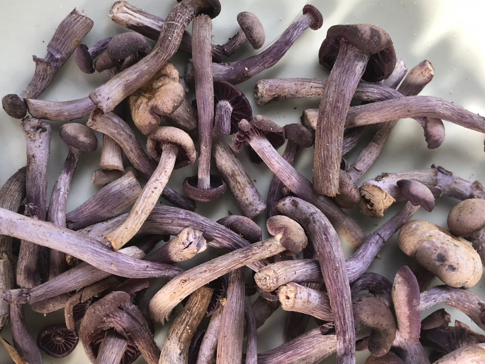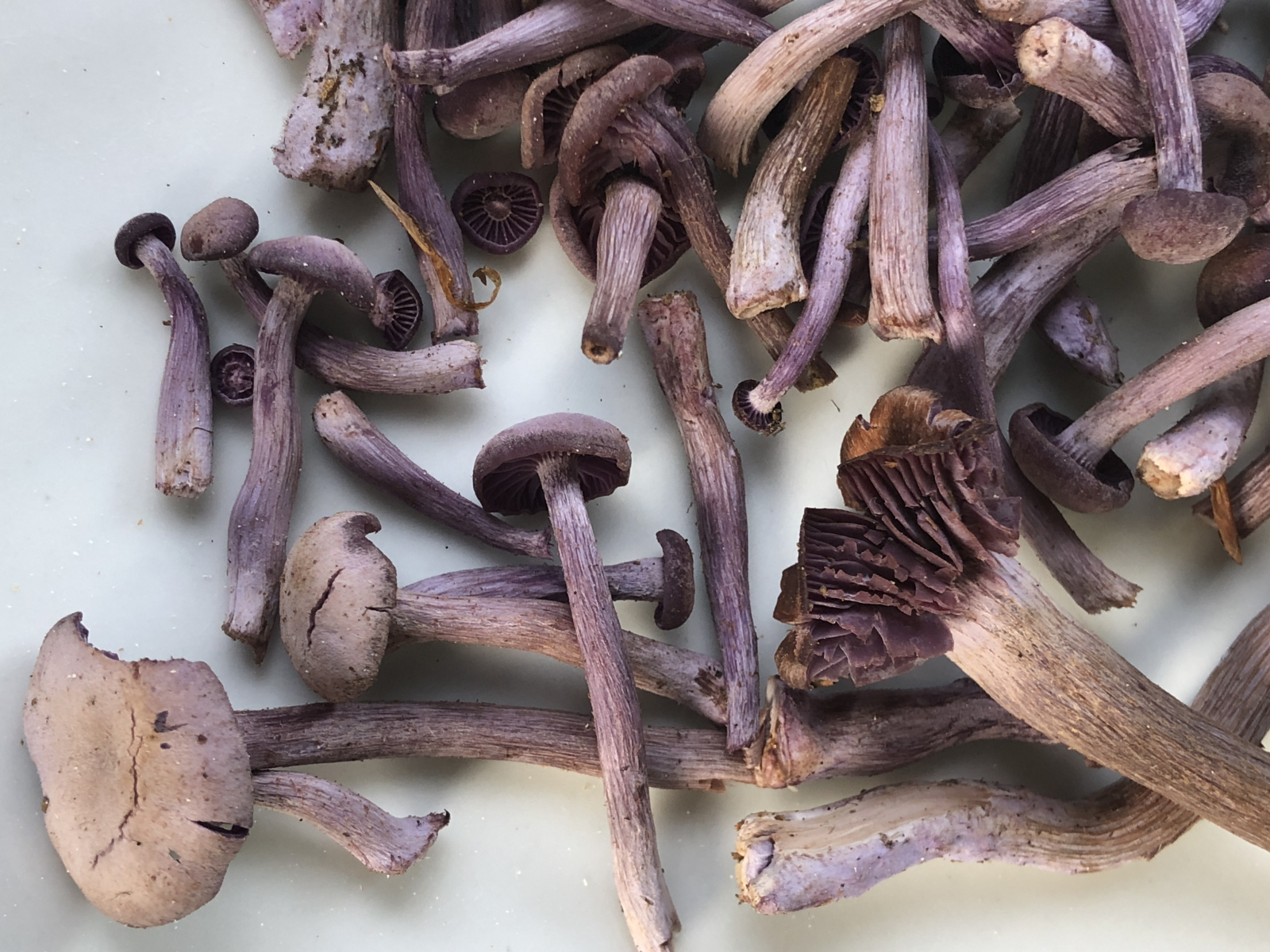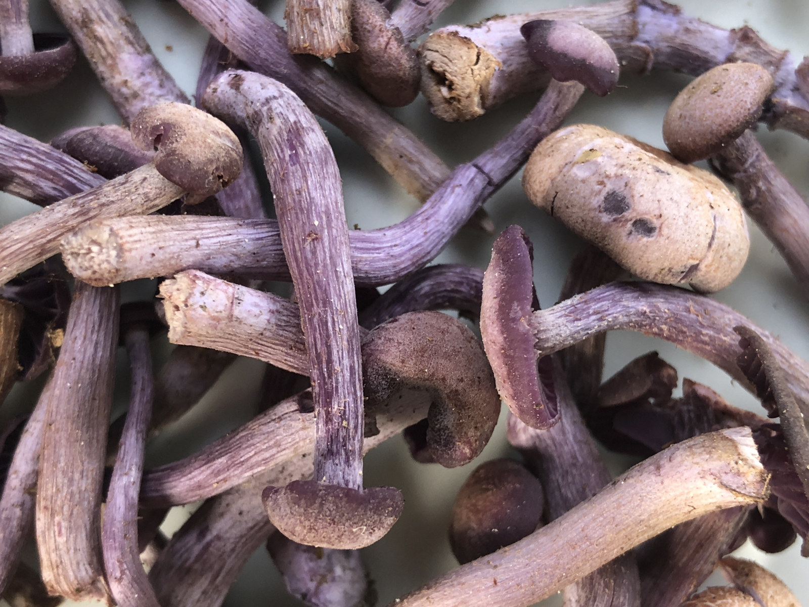 Ja, Lila Lacktrichterlinge, teils sehr alt und trocken.