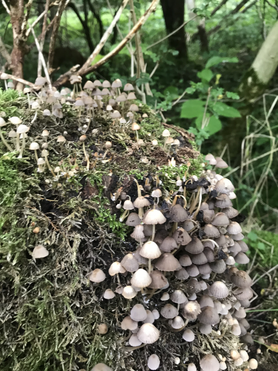 Auf den letzten beiden Bildern zB die Gesäten Tintlinge (Coprinellus disseminatus), die sind ja so erkennbar.Auf dem Drittletzten Bild die Büscheligen Faserlinge (Psathyrella multipedata), die müsste man mal noch umdrehen, ob sie wirklich im Büschel wachsen, aber es sieht doch schon sehr nach eben der Art aus.