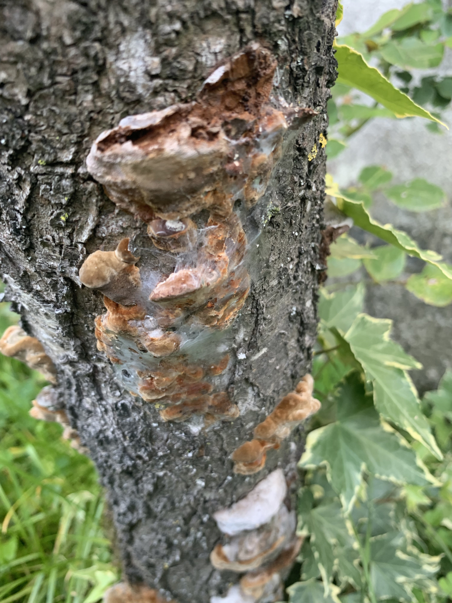 Der Pflaumen - Feuerschwamm (muss auf besserwisserisch Phellinus pomaceus heißen, nicht tuberculosus, auch wenn er in vielen Büchern als tuberculosus drin steht) ist sehr variabel - und besiedelt auch andere Weichhölzer, nicht nur Prunus spec.