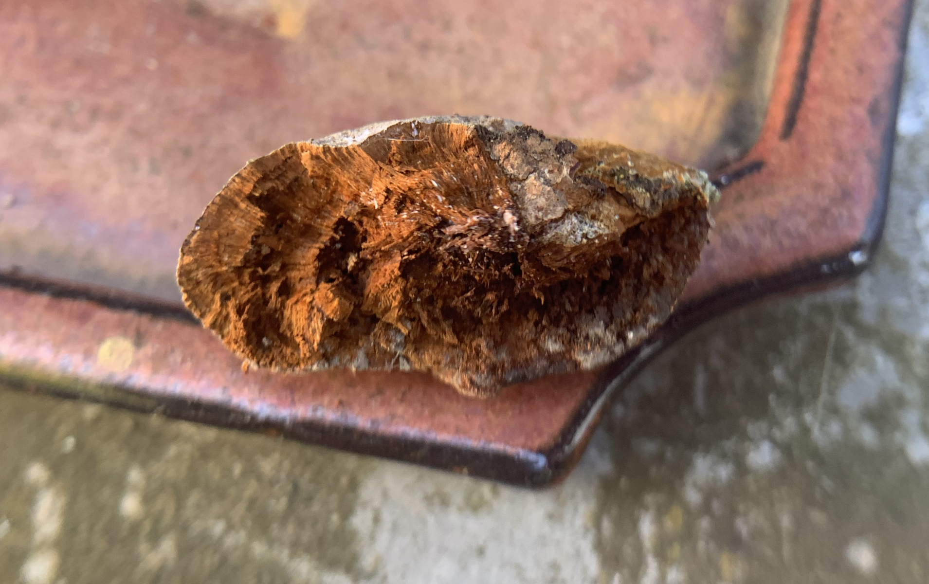Fruchtkörper: Ca. max. 10 cm, braun, sehr feine Poren,