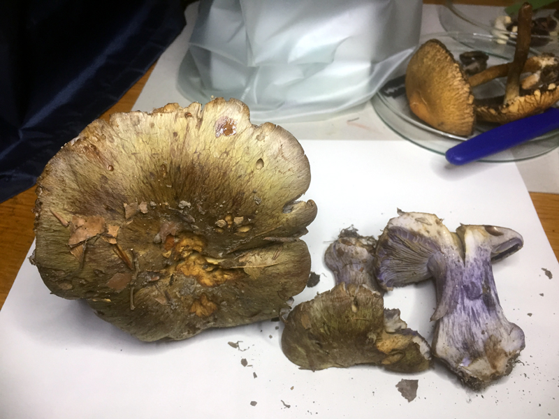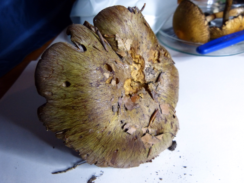 Ein recht kräftiger Pilz (Hutdurchmesser des größeren Exemplars 12cm) mit beeindruckendem Farbspiel.