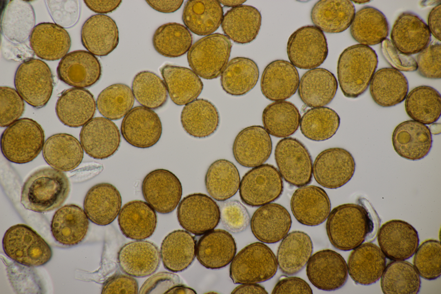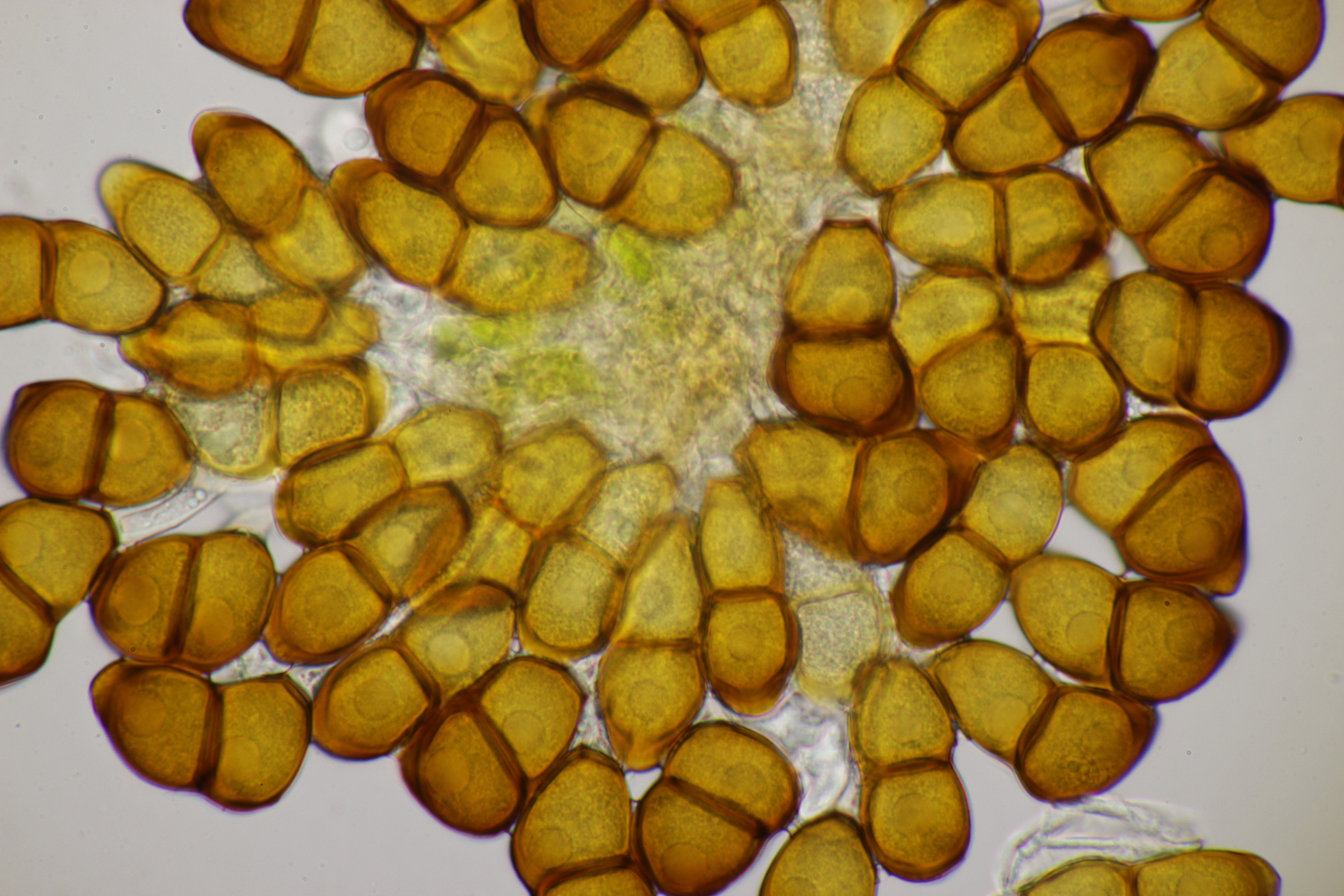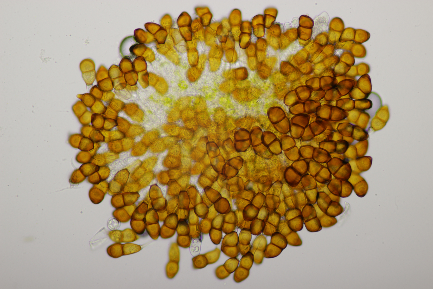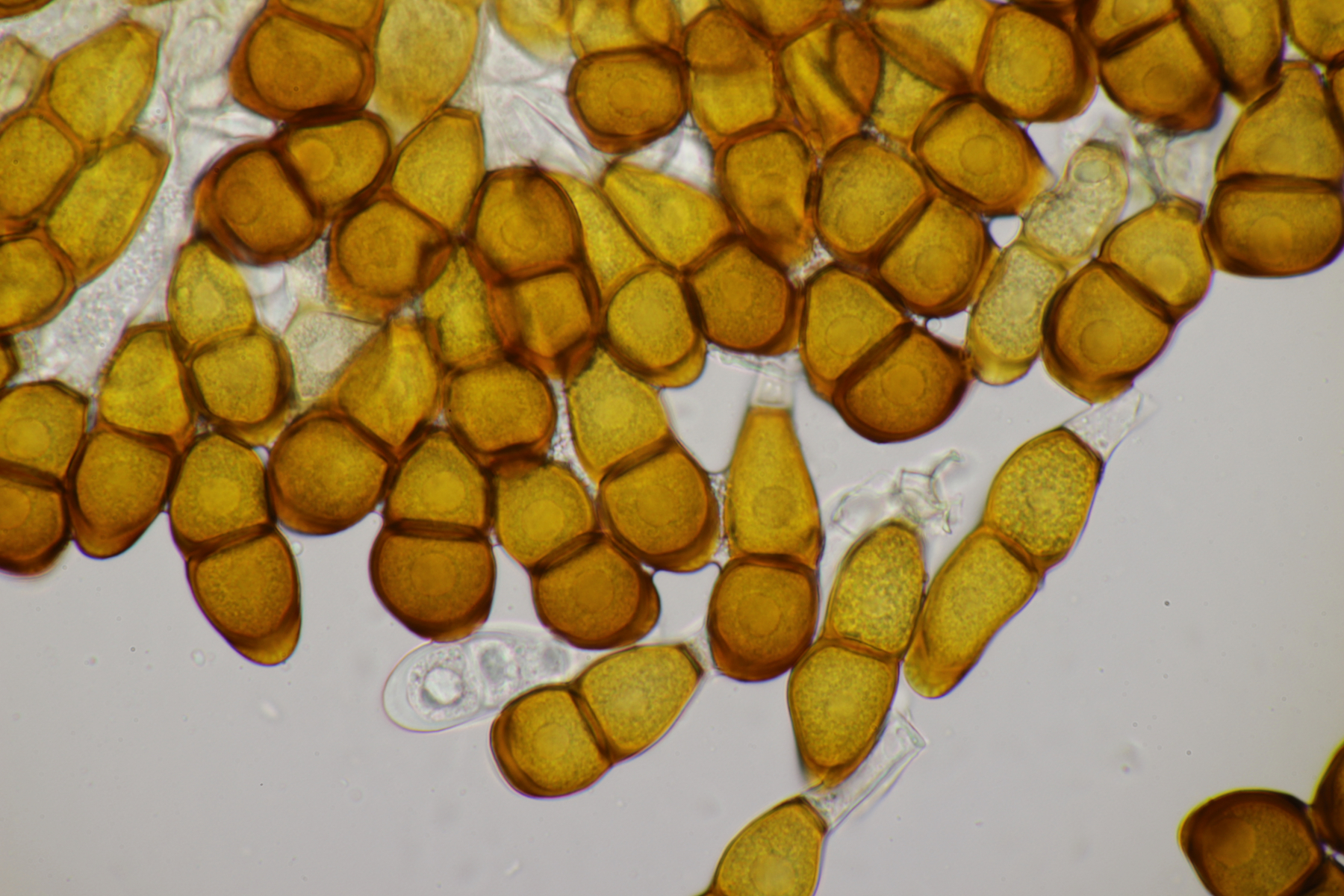 7. Puccinia artemisiella ex Artemisia vulgaris. Teliosporen 33-44 µm lang, im Mittel 38 µm.