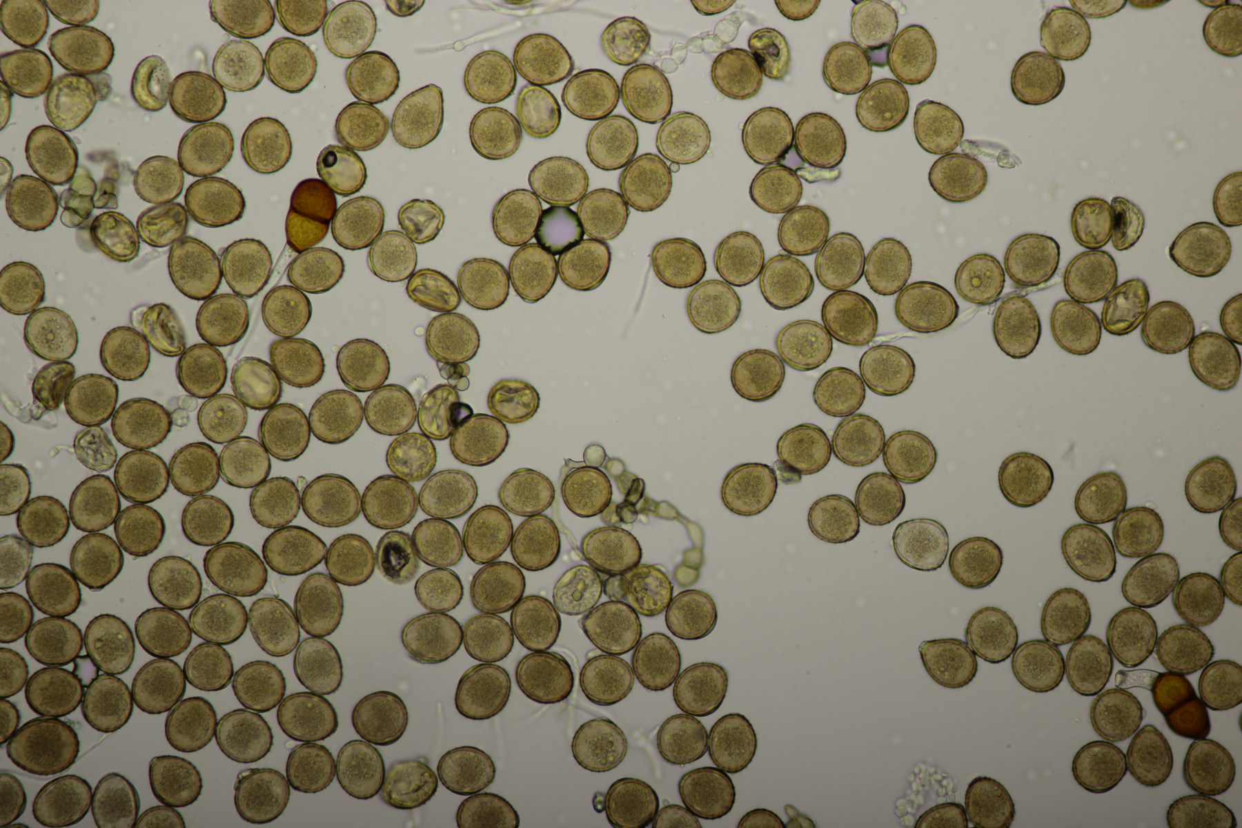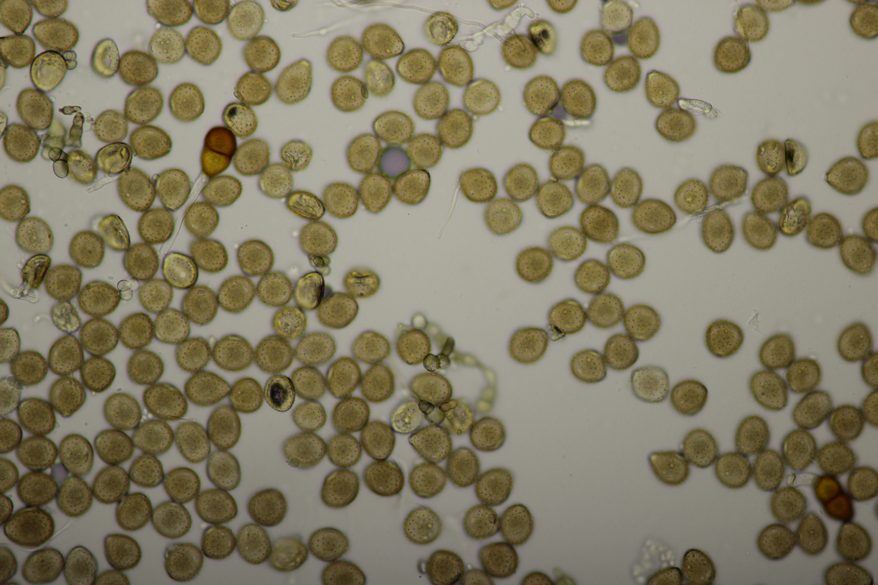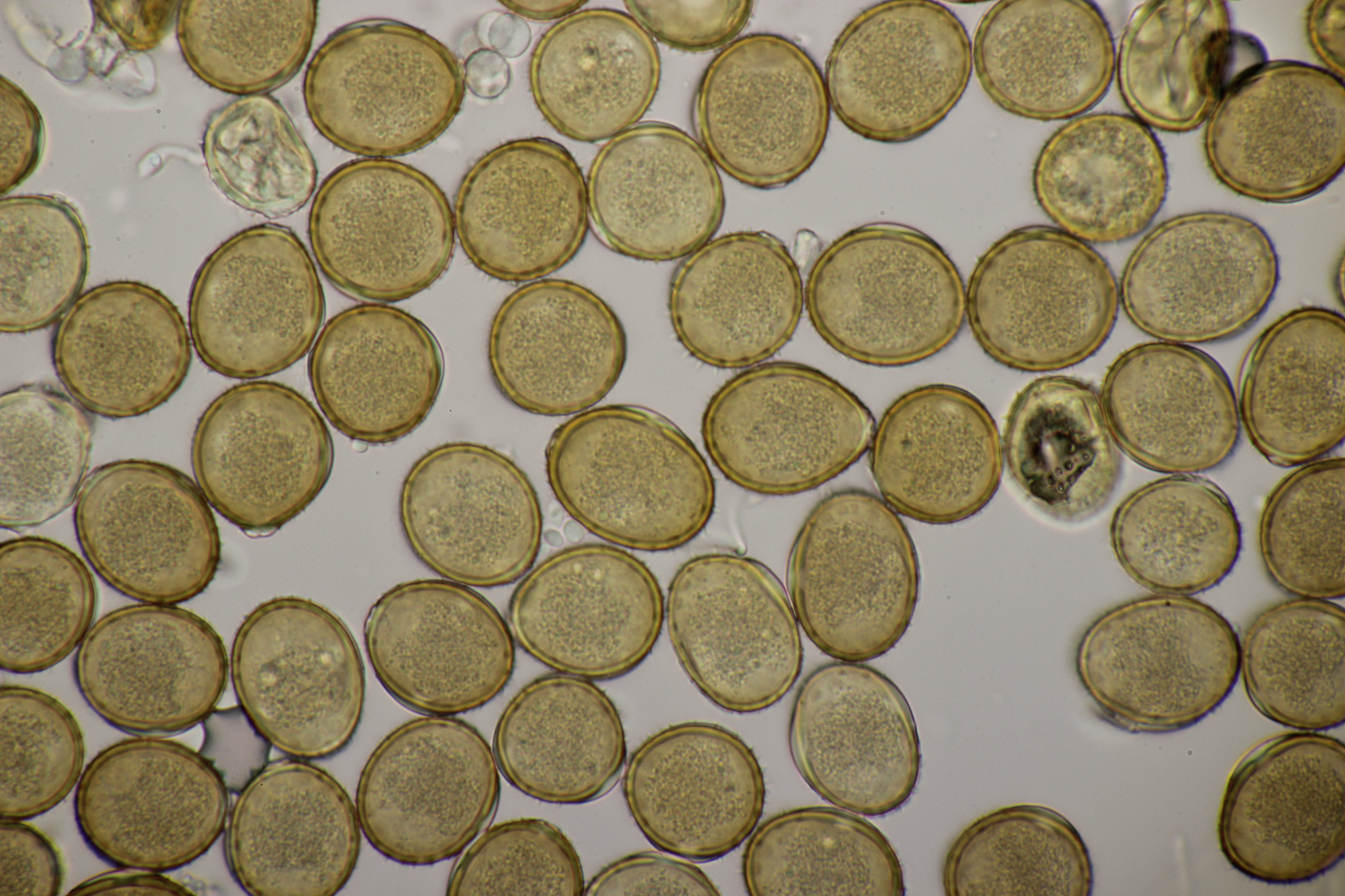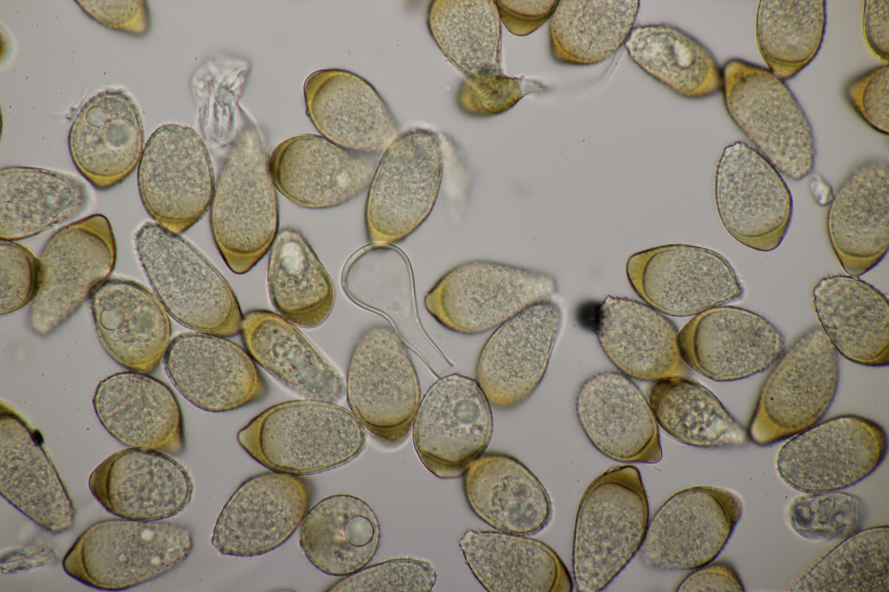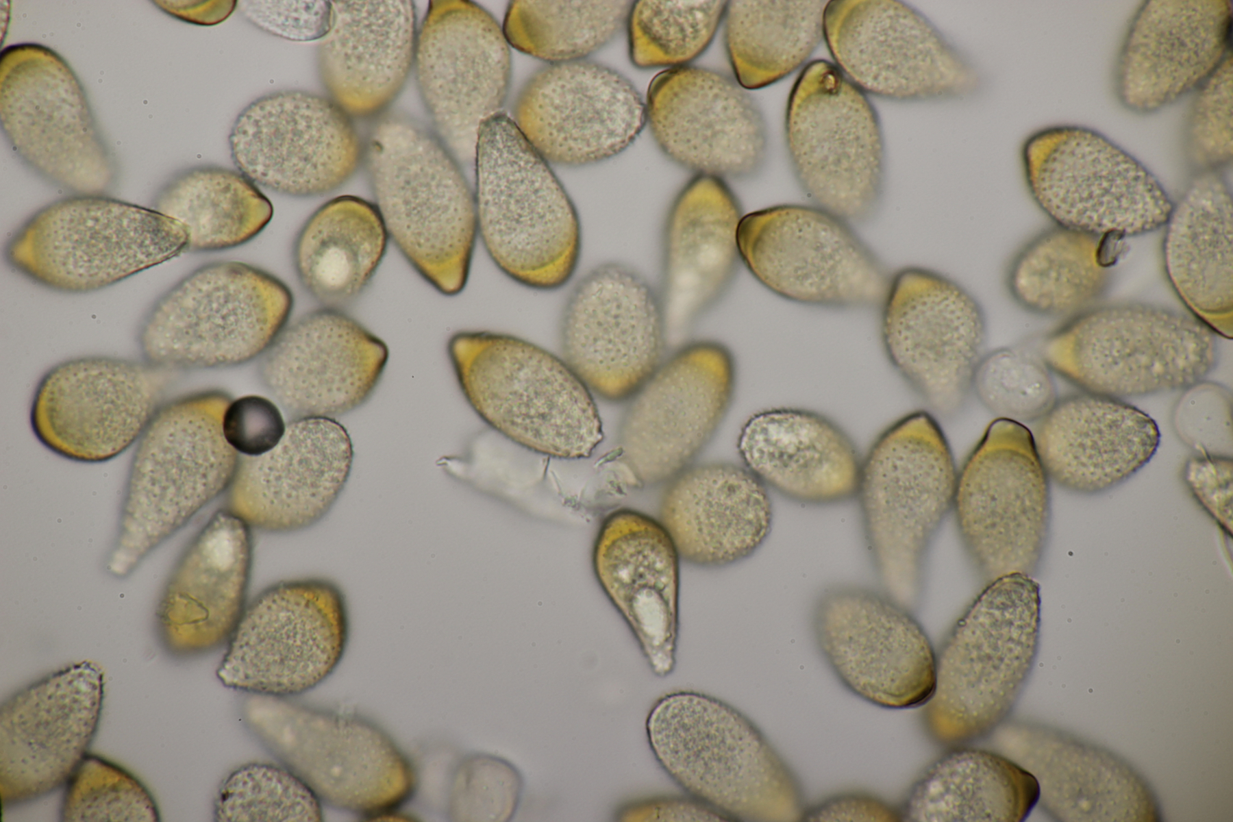7. Puccinia artemisiella ex Artemisia vulgaris. Teliosporen 33-44 µm lang, im Mittel 38 µm.