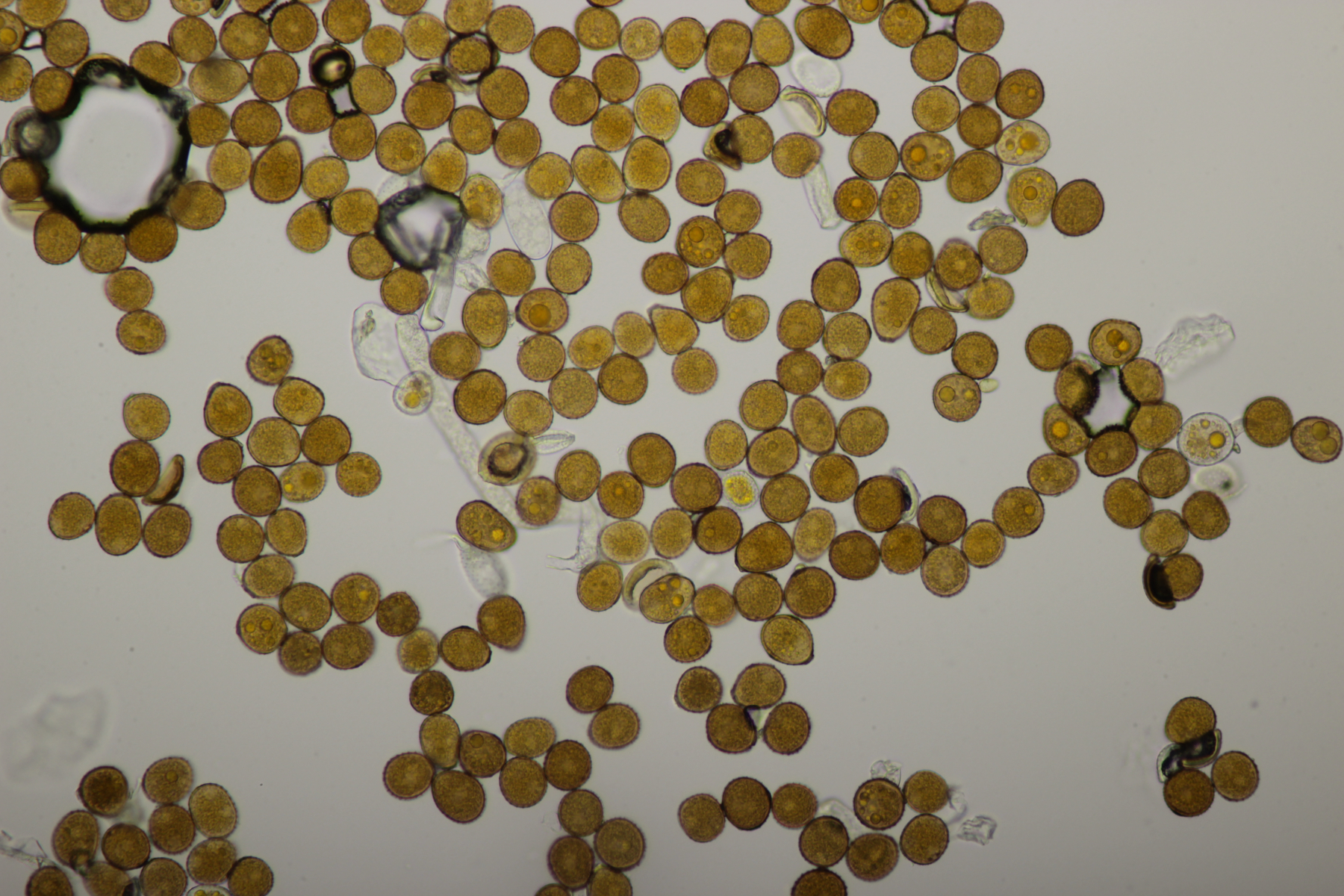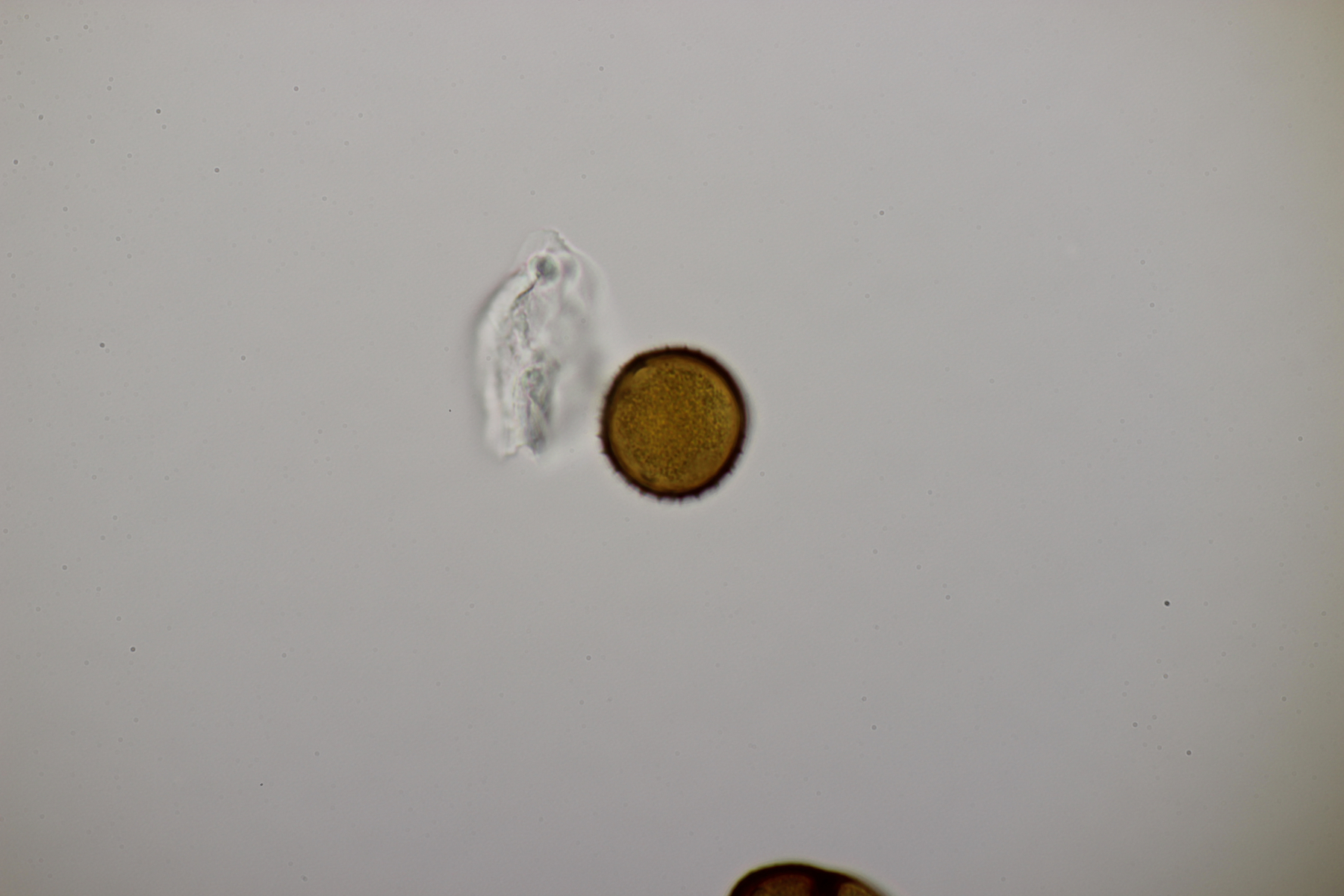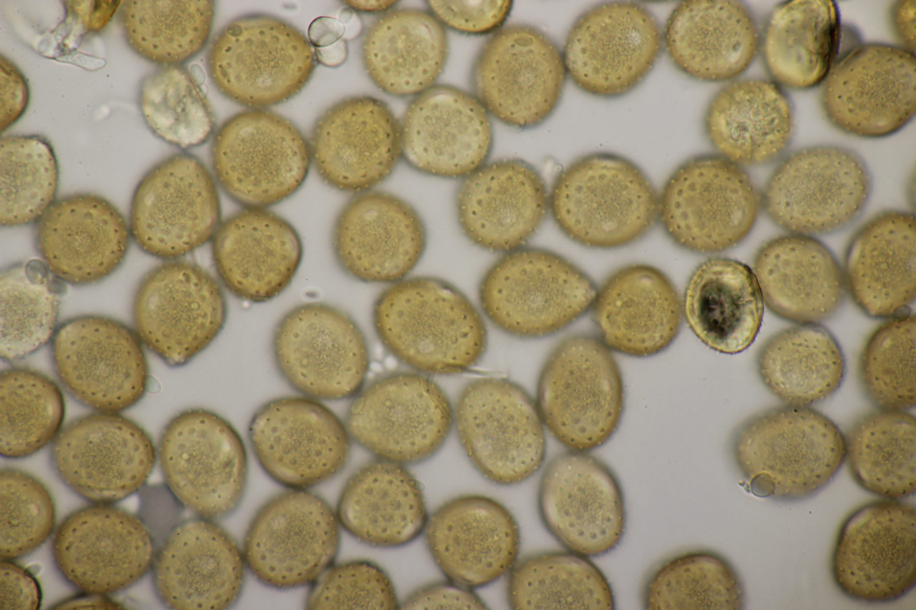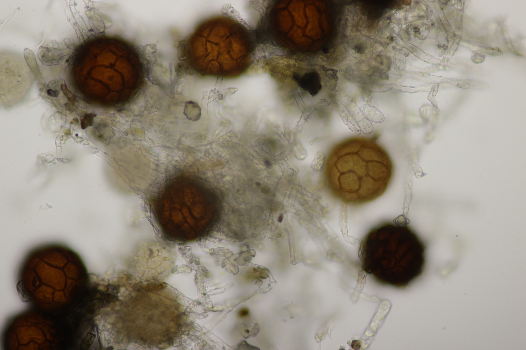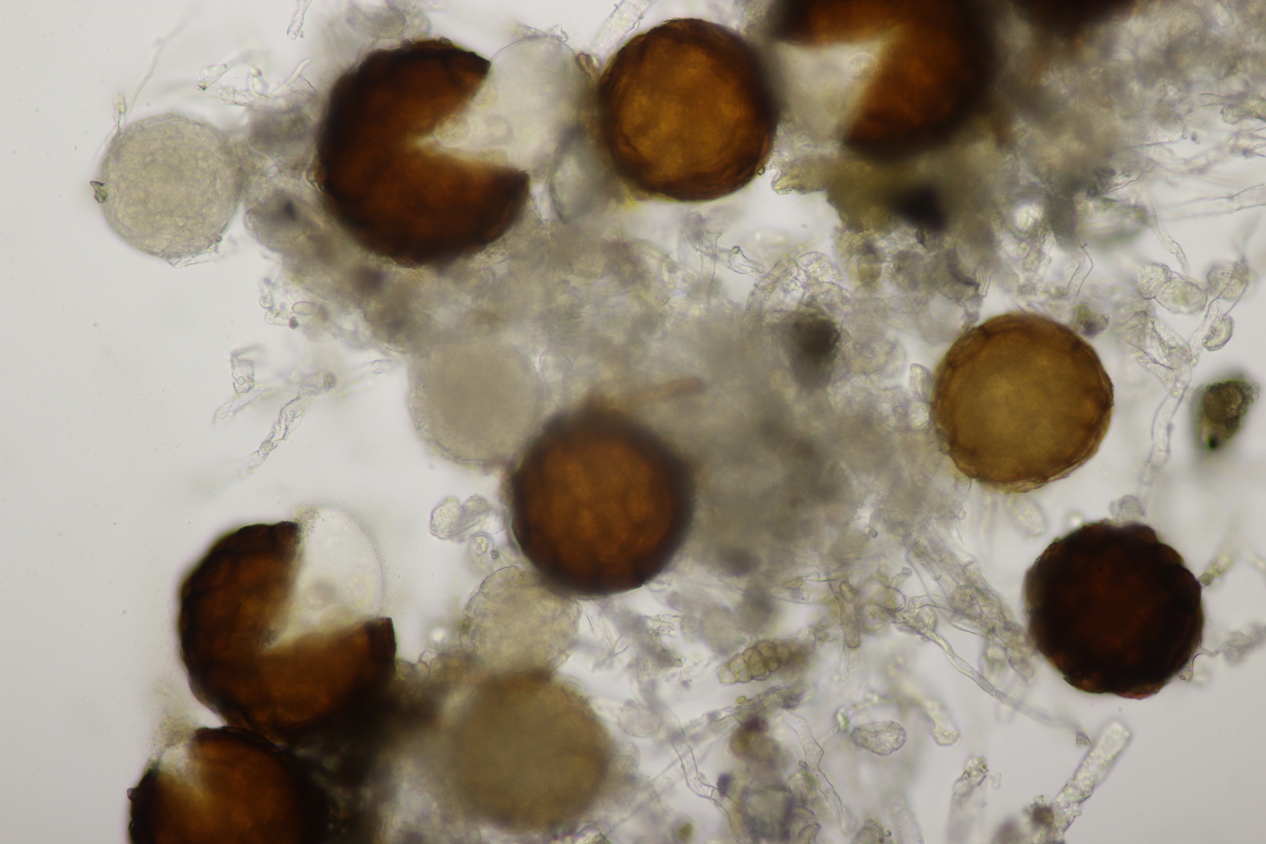7. Puccinia artemisiella ex Artemisia vulgaris. Teliosporen 33-44 µm lang, im Mittel 38 µm.