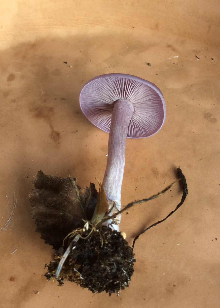 Violetter Rötelritterling? Farbe und Lamellen-Stilansatz sind aber anders...