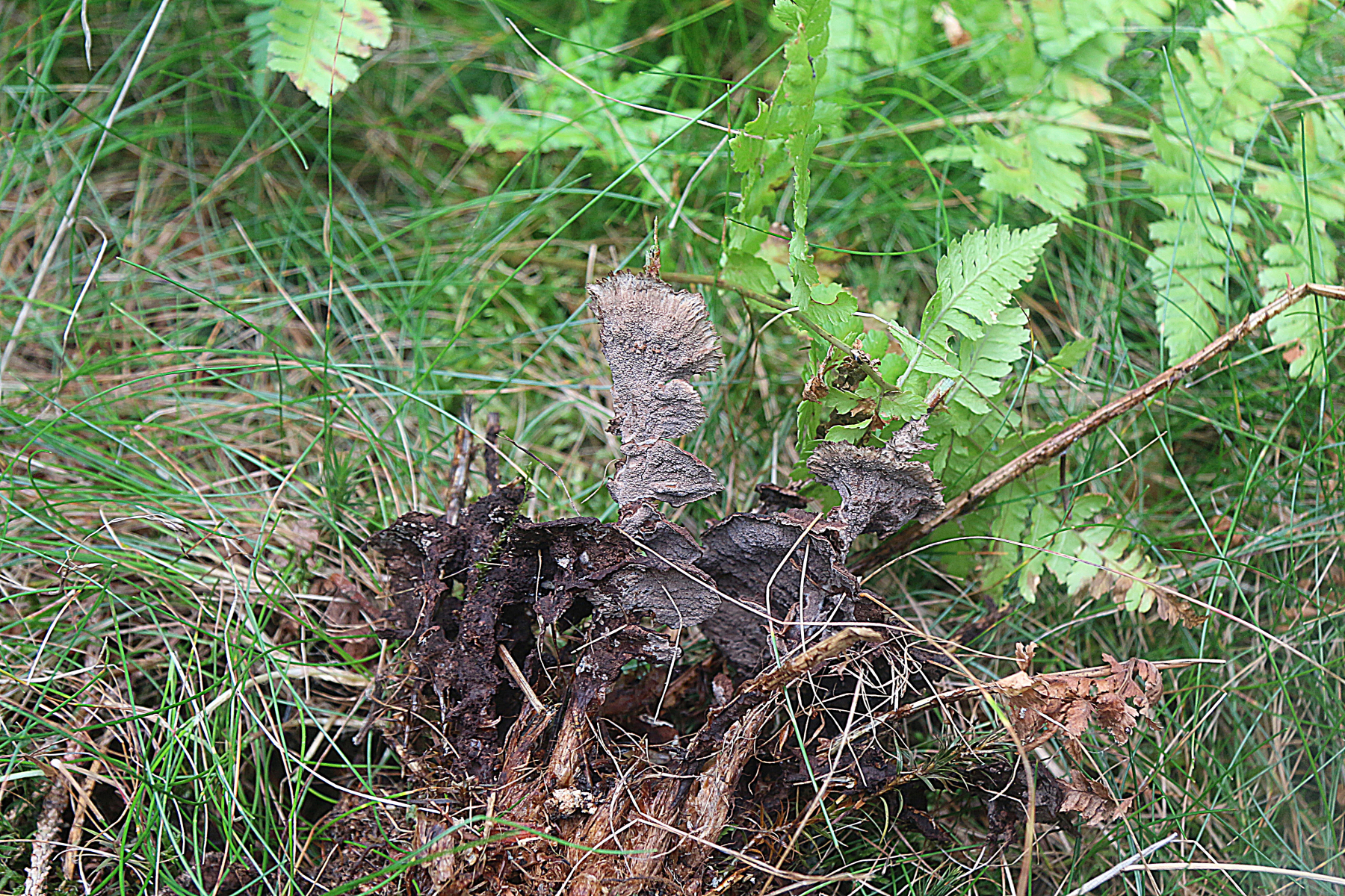 Um diese Jahreszeit habe ich die zu erwartenden staubigen Überbleibsel angetroffen, auch nicht uninteressant. Die Fruchtkörper bildeten Stiele aus, vermutlich um den Sporen eine bessere Abflugsmöglichkeit zu bieten. Ca. 12 cm,