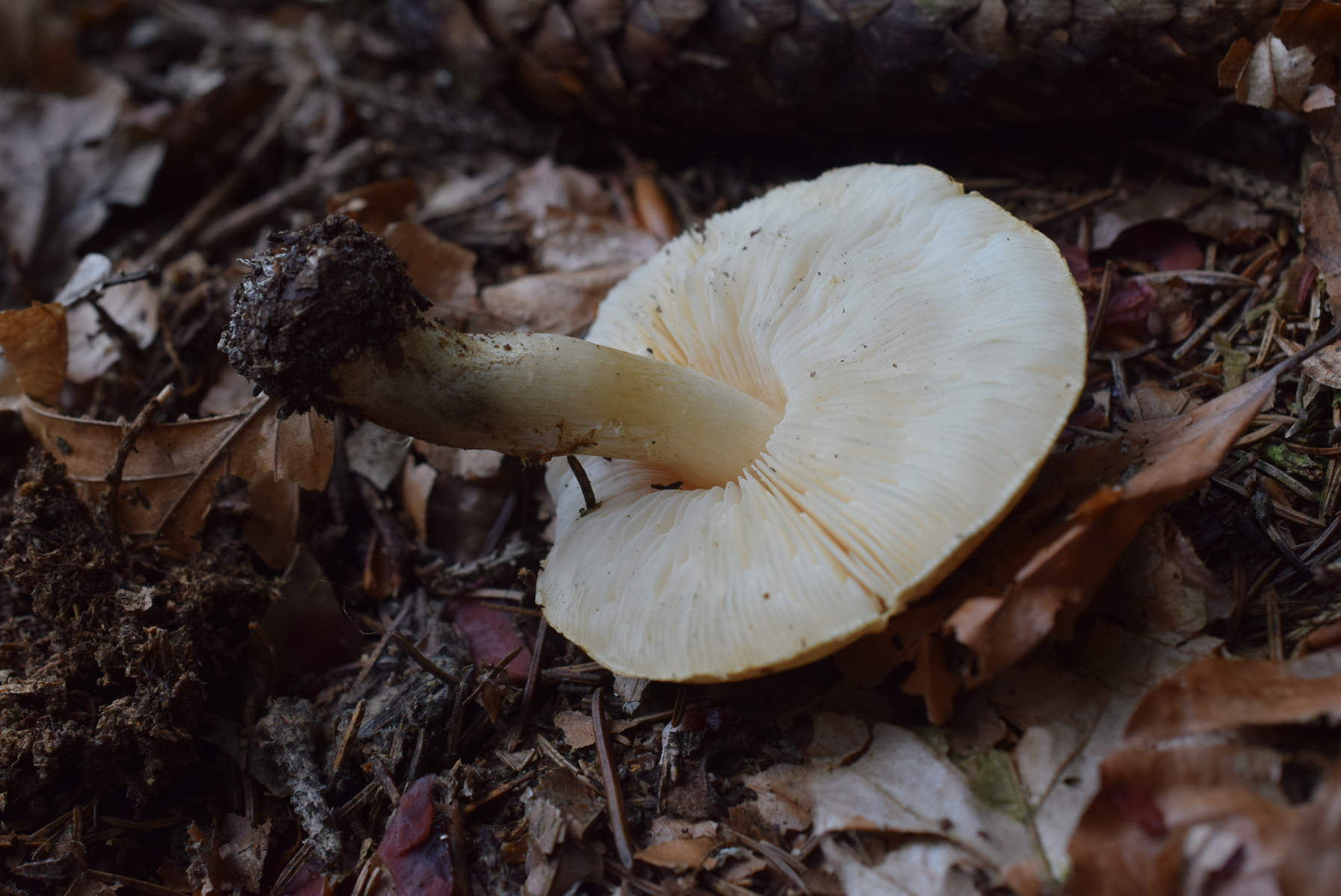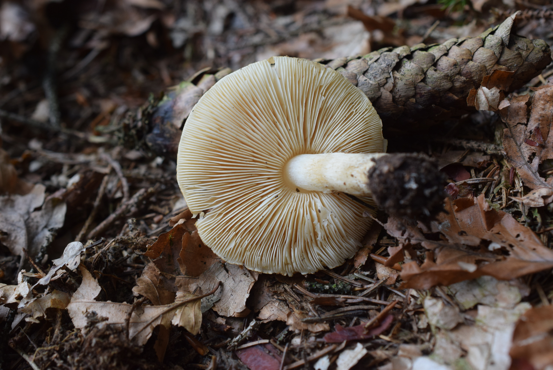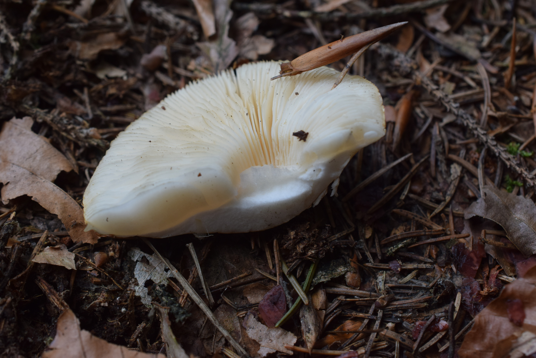 Sporenpulver weis , Hut nach Pflücken (nach paar Stunde) von hellgelb Farbe hat an Ockergelb verfärbt
