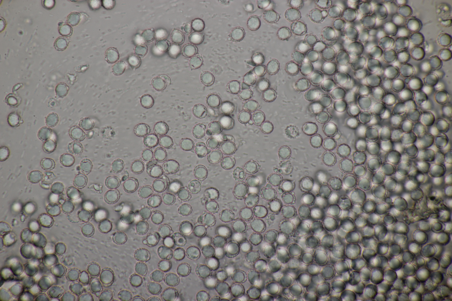Sporenpulverfarbe IVe, Sporengröße (7.6 +- 0.4) µm x (6.4 +- 0.5) µm