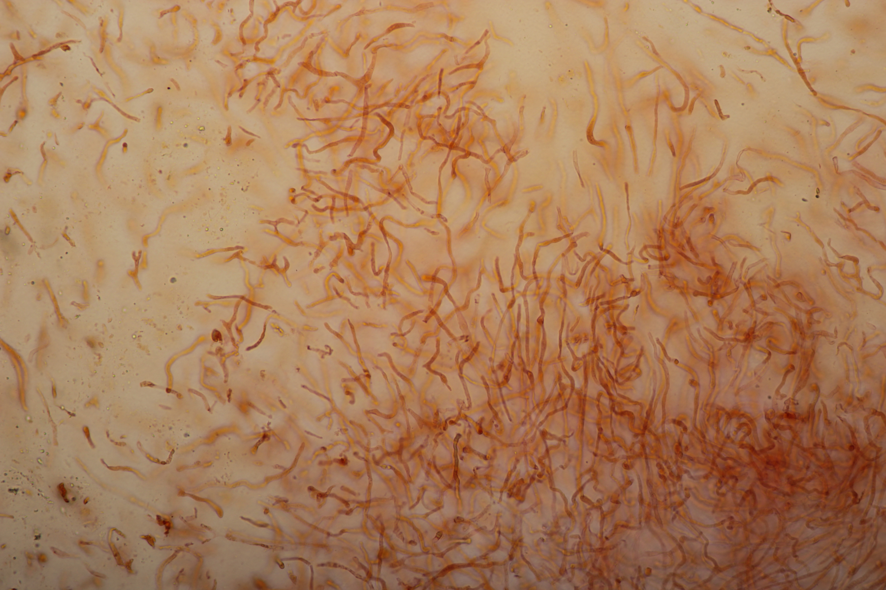 Huthaut circa bis zum halben Hutradius abziehbar, Hutfleisch darunter weiß