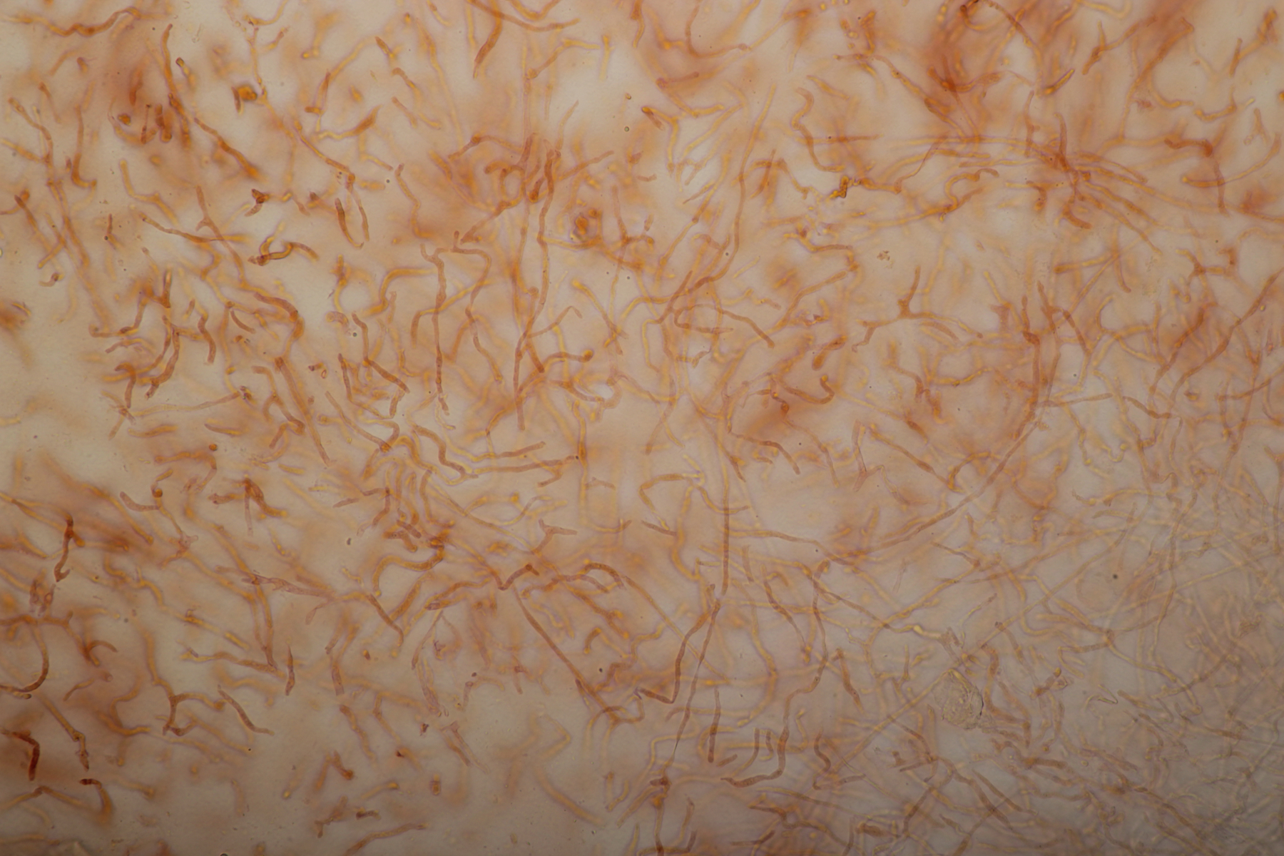 Huthaut relativ gut abziehbar, Hutfleisch darunter weiß