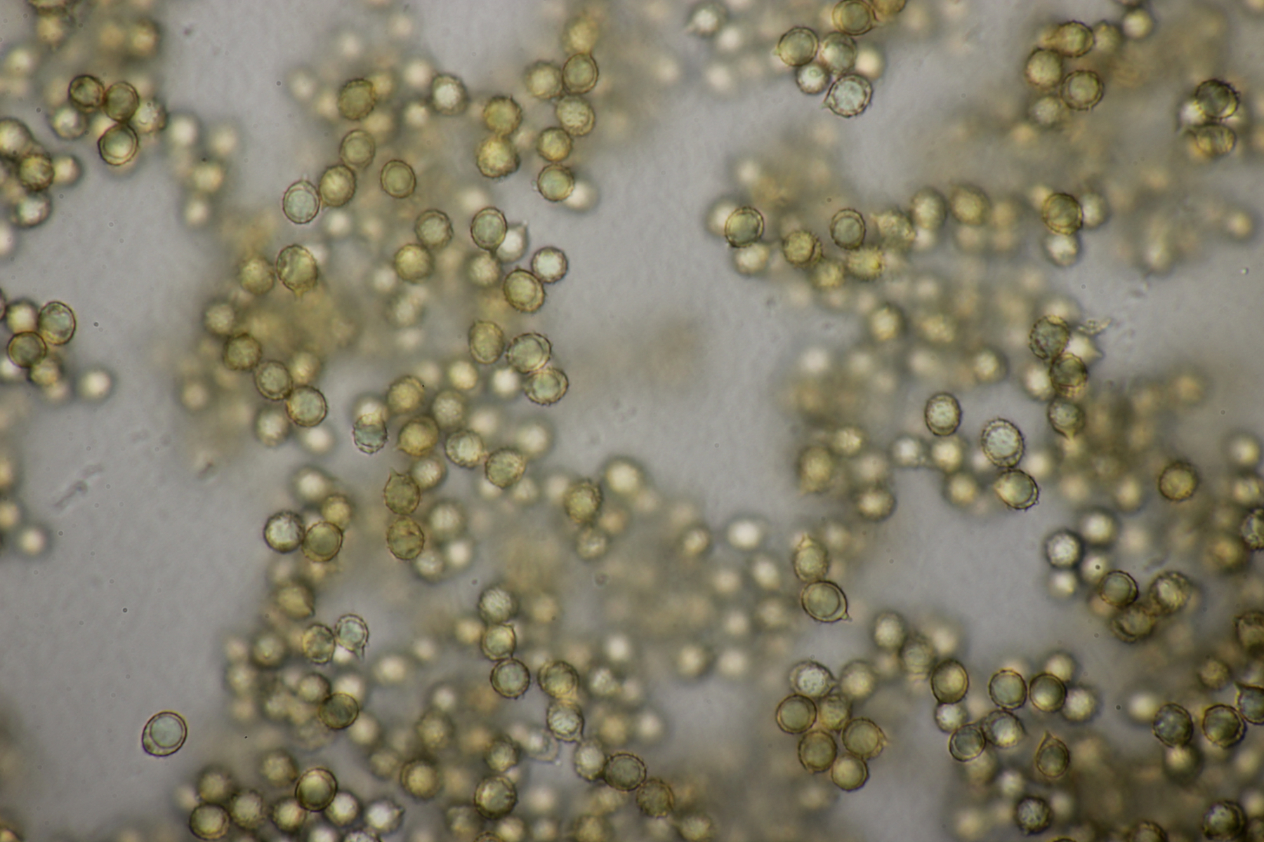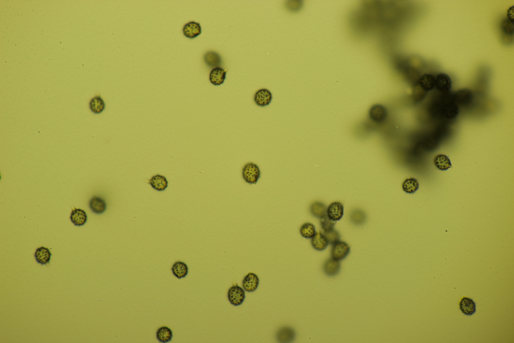 Sporenpulverfarbe Ib/IIa, Sporengröße (8.1 +- 0.4) µm x (6.3 +- 0.5) µm
