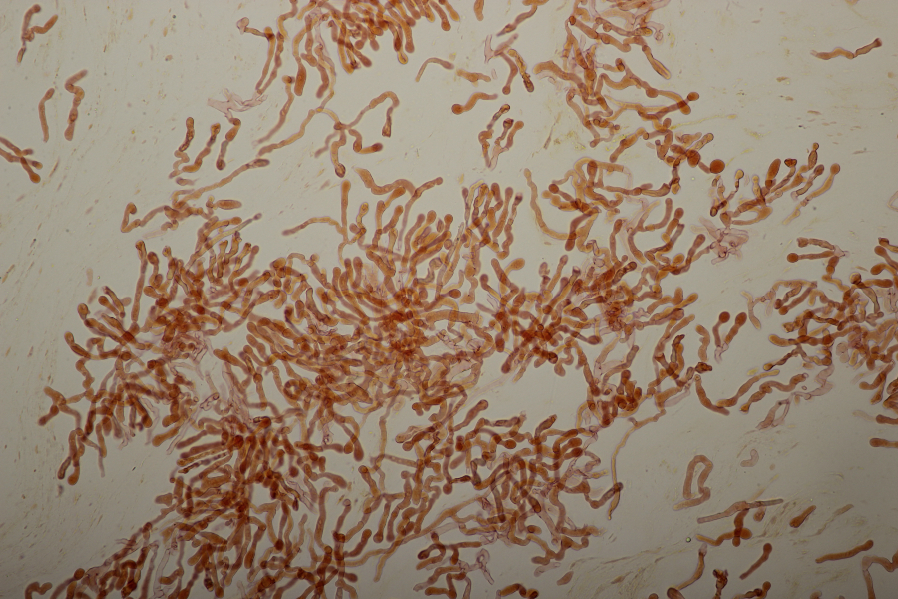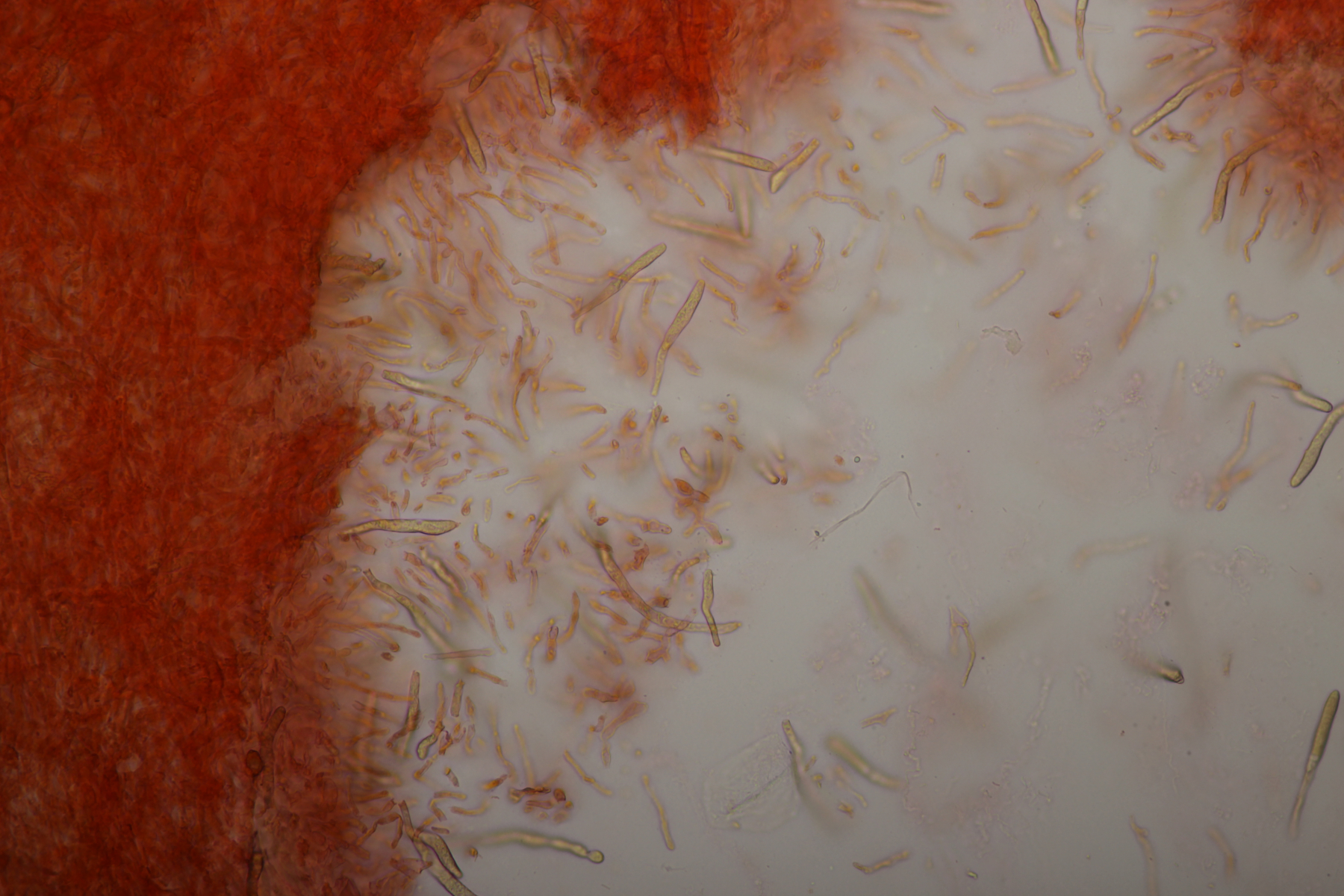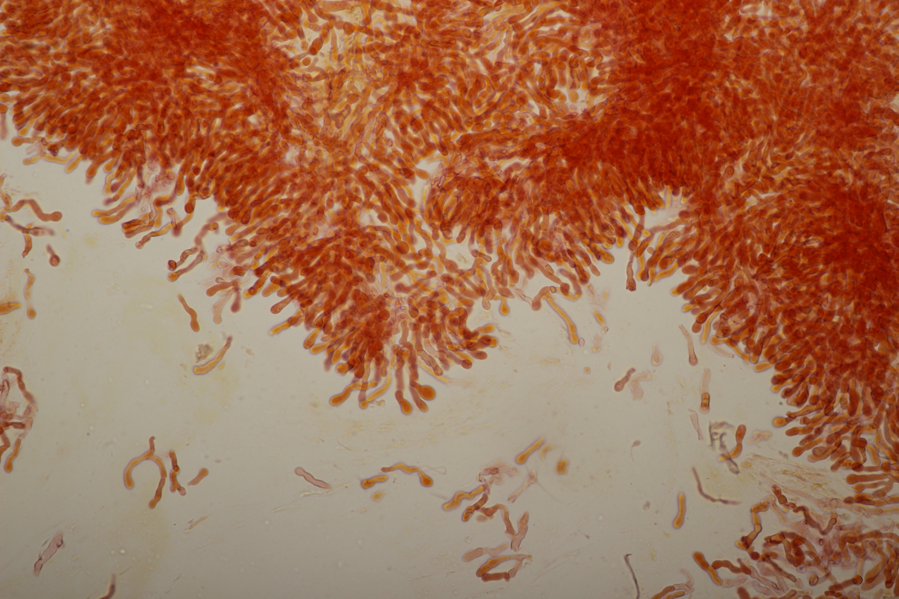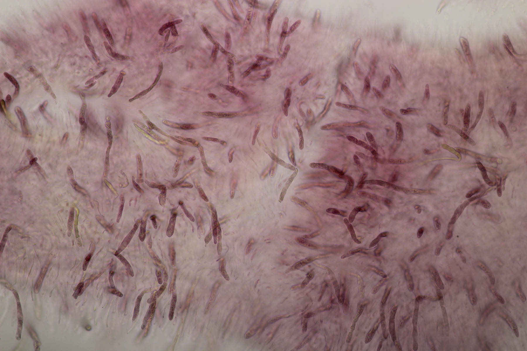 Hier hatte Karl anhand der Makrobilder bei FB R. claroflava ins Spiel gebracht. Das scheint von der Sporenpulverfarbe her nicht ganz zu passen (wobei ich nur wenig Pulver hatte und die Farbe da also mit einer gewissen Unsicherheit behaftet ist). Was aber am meisten irritiert ist die Huthaut. Die sieht irgendwie ganz anders aus als alle Russulahuthäute, die ich bis jetzt unter dem Mikro hatte.