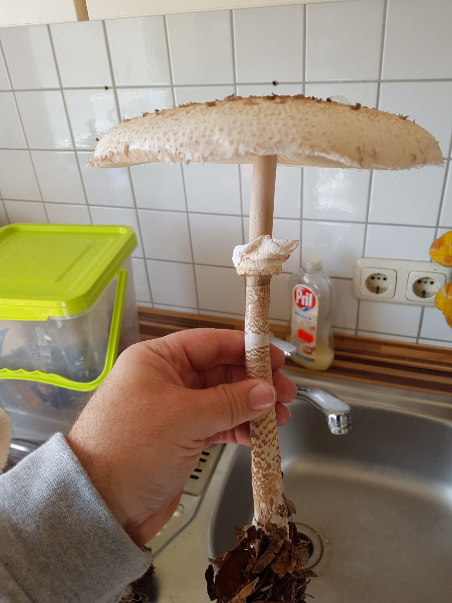 Parasole sind meine Lieblingsspeisepilze, aber bisher habe ich immer nur die Schirme gegessen und die Stiele weggeschmissen.