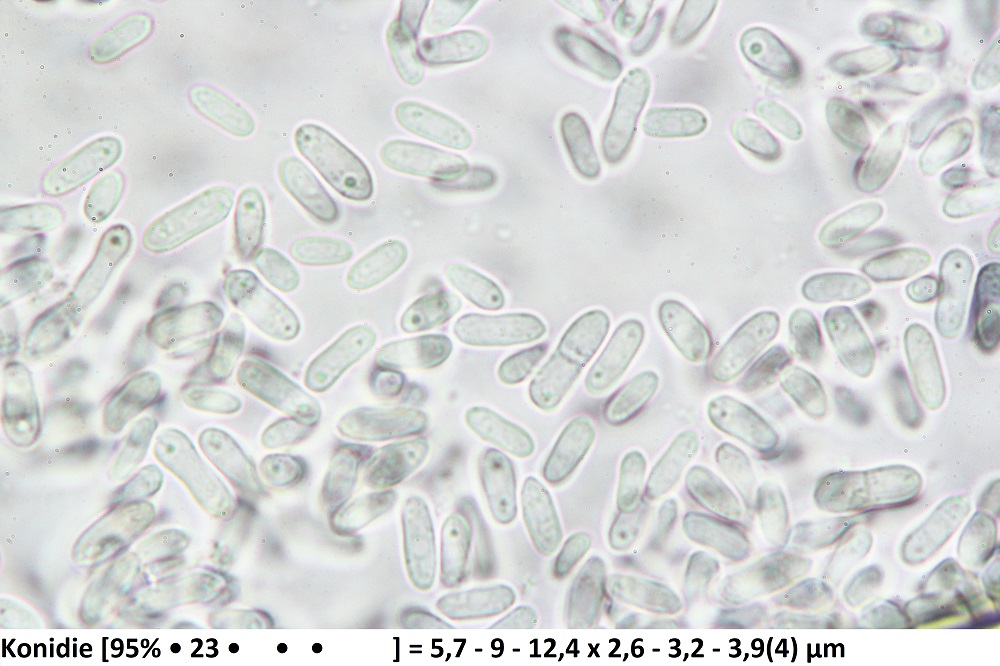 9. Konidien, manchmal einfach septiert und oft 1 Tropfen an einem oder beiden Polenden