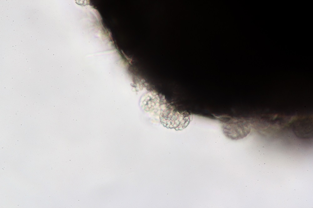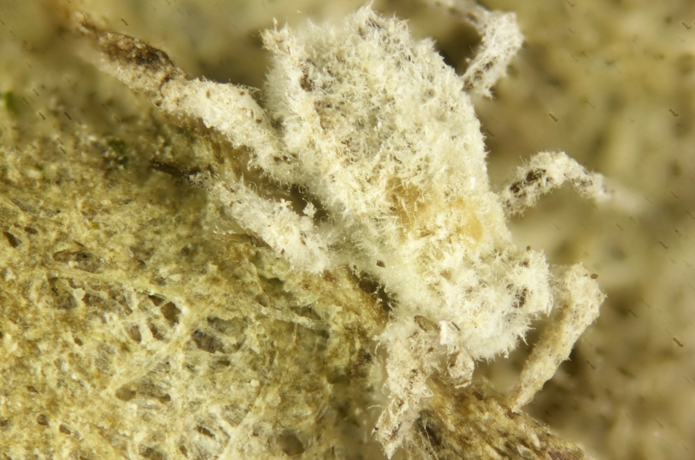 Bei dem Pilz handelt es sich höchstwahrscheinlich, um eine Acremonium oder Lecanicillium, allerdings ist die Art unklar.