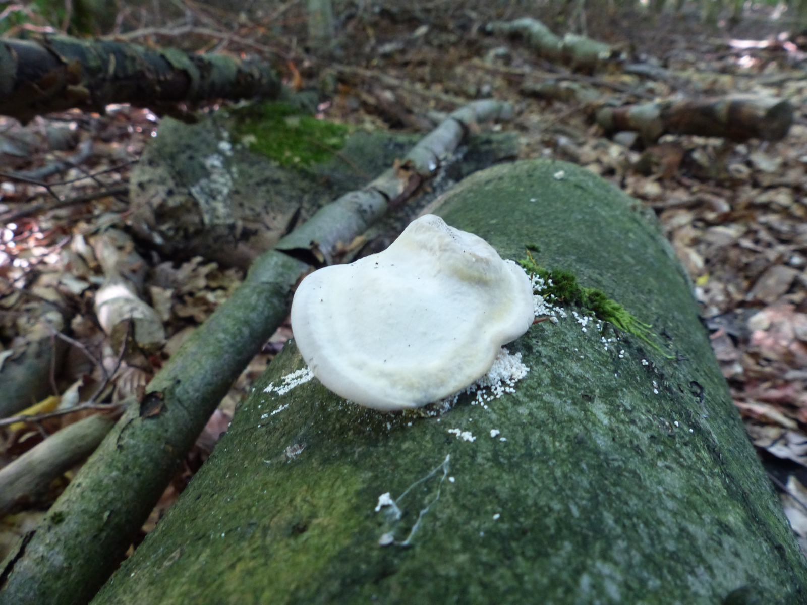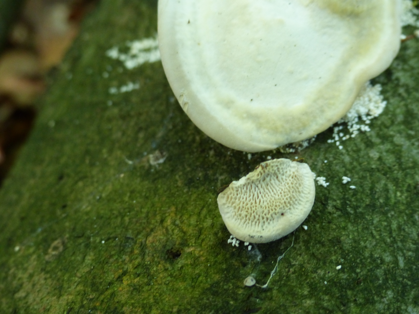 Fruchtkörper: weiß, ein wenig samtig, wellig, gezont,