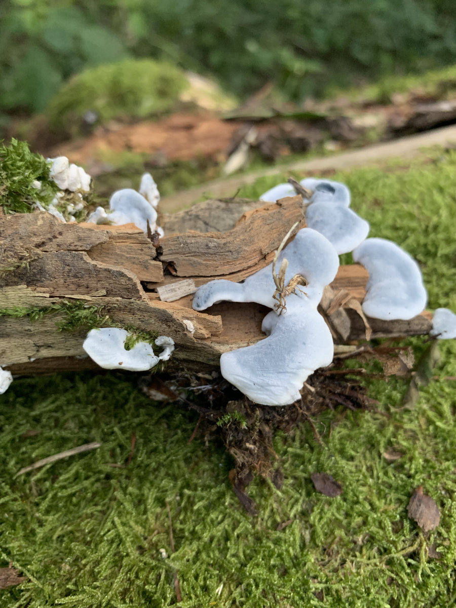 Nicht groß, ca. 5 cm max. jeder. Ich weiß es gibt einen blauen Porling - der ist es eher ich nicht. Ich kann das Holz nicht bestimmen, es ist schon sehr zerfallen. Aber ich vermute Ahorn. 😄