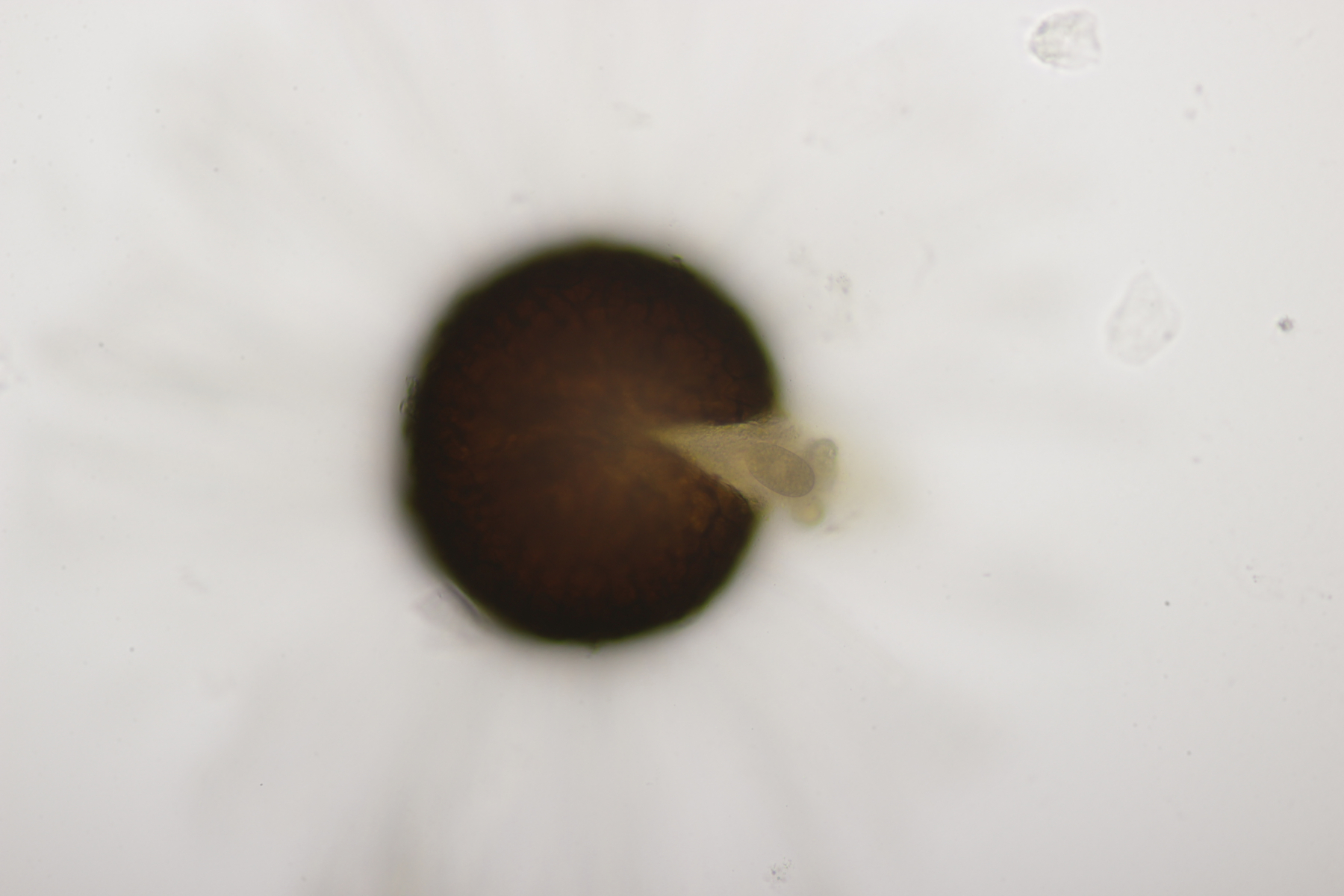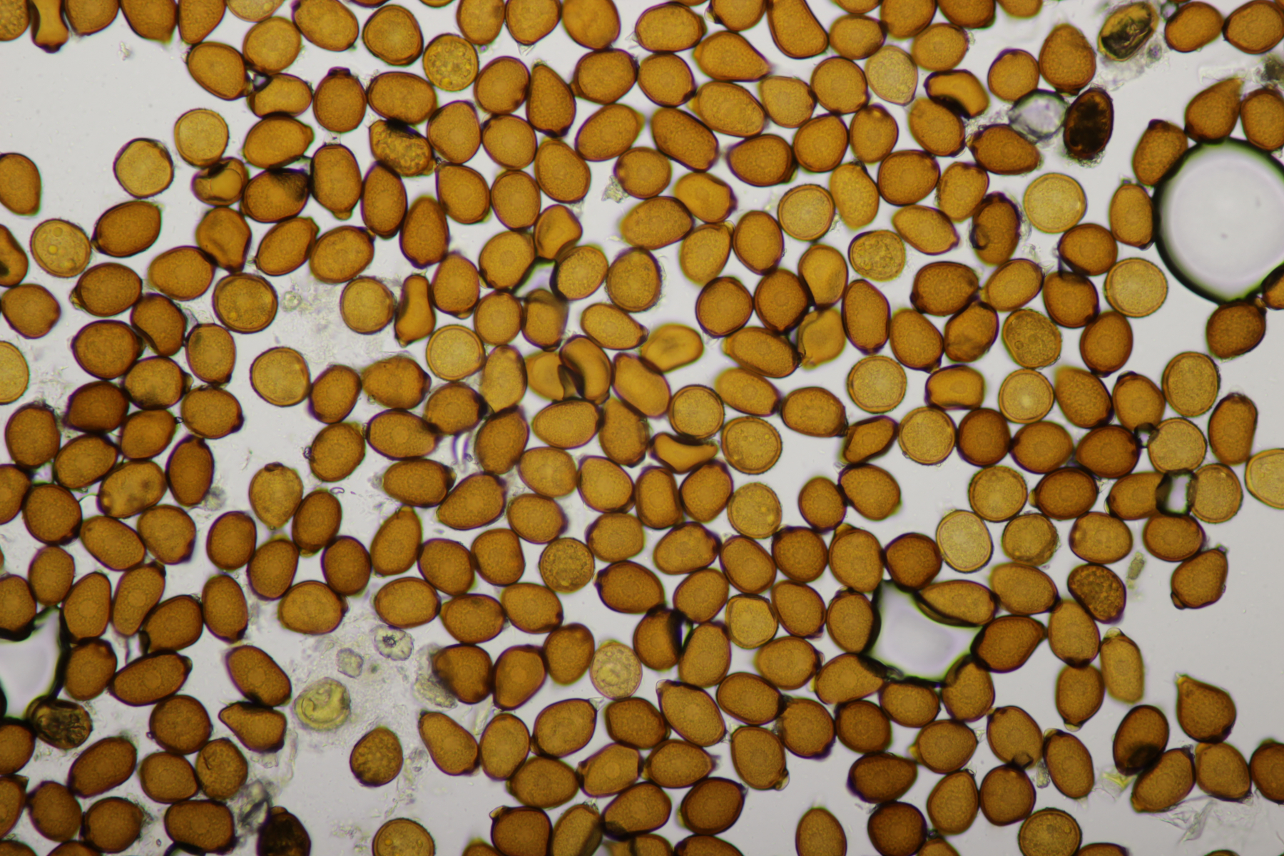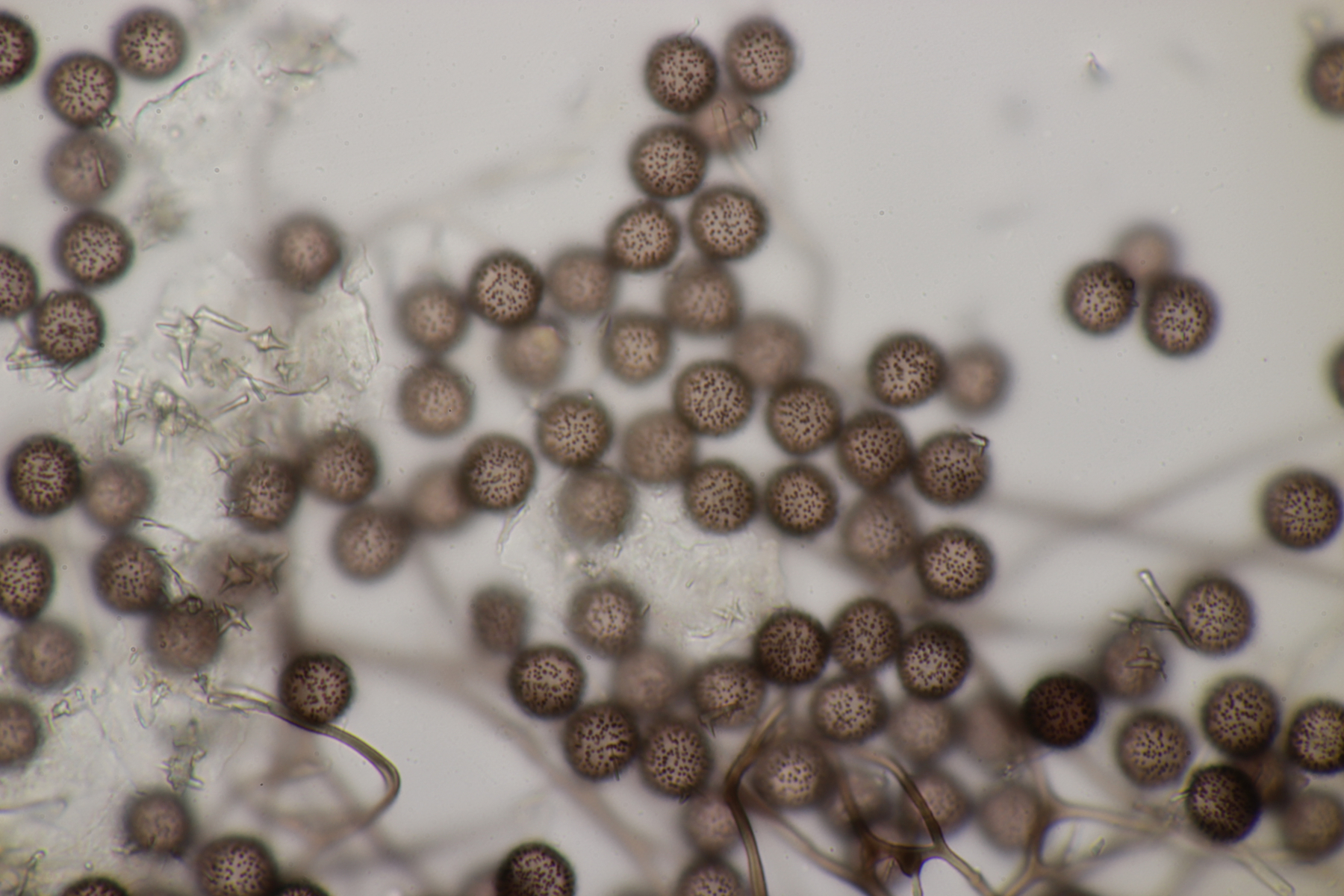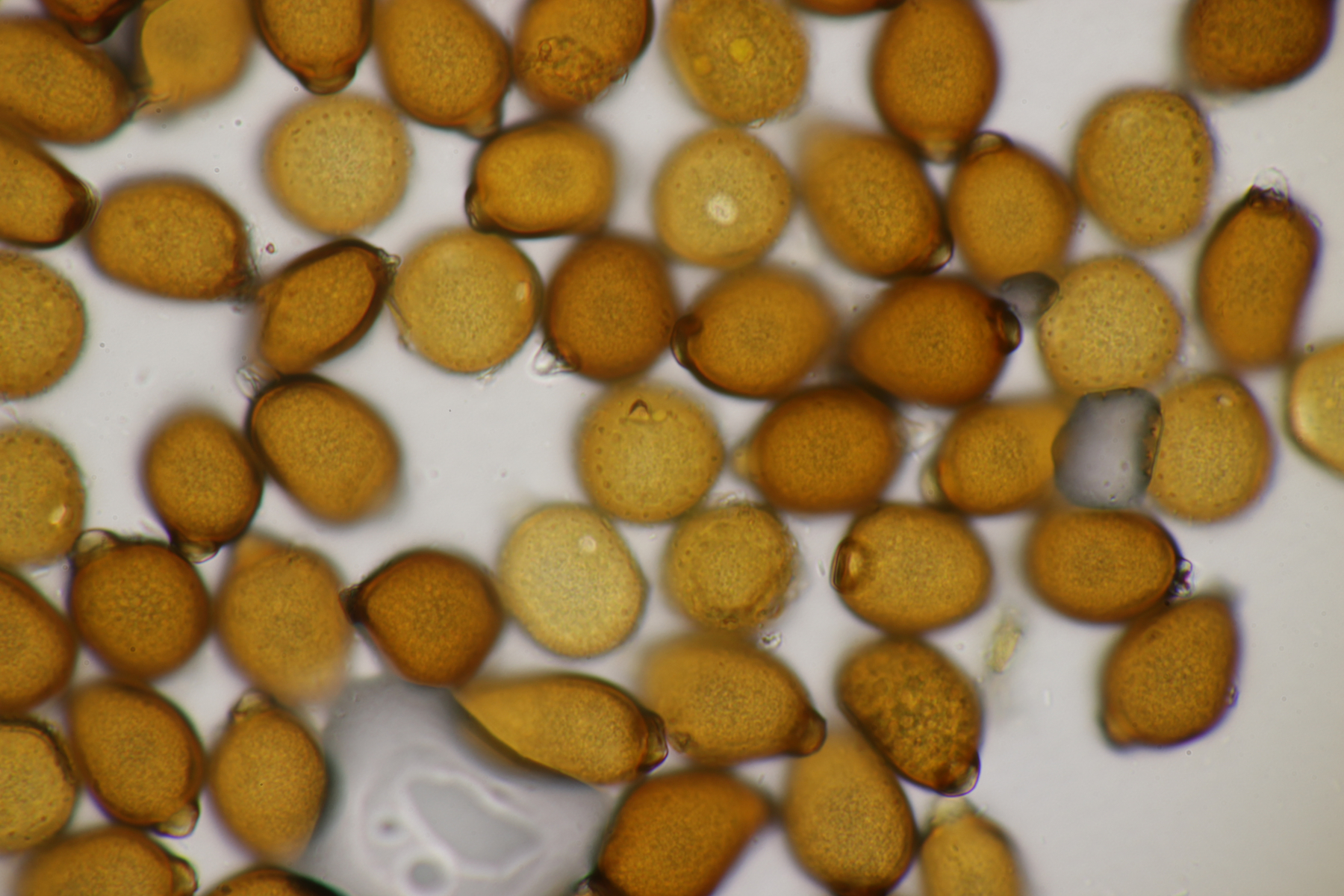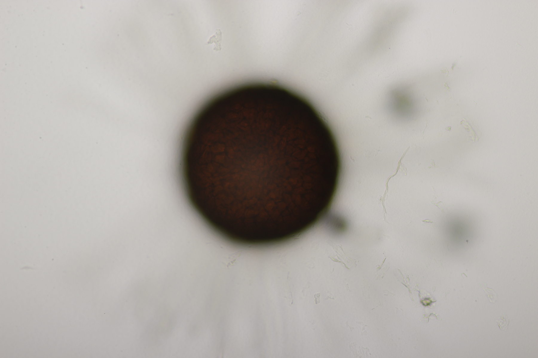 1. Paxillus sp. unter Birke. Ich hab bei meinen Eltern einen Sporenabwurf gemacht (leider kein Foto davon). Das war dann ein typisches Rostpilz-Uredien-braun. Aber ob das jetzt rot genug war für P. cuprinus? Der Abdruckk blieb bei meinen Eltern und ich hab dann zu Hause versucht, noch mal mehr Sporen zu bekommen um auch mikroskopisch reinzuschauen. Das sah heute morgen noch nicht wirklich vielversprechend aus, aber mal schauen, ob sich im Mikro dann doch noch Sporen finden.