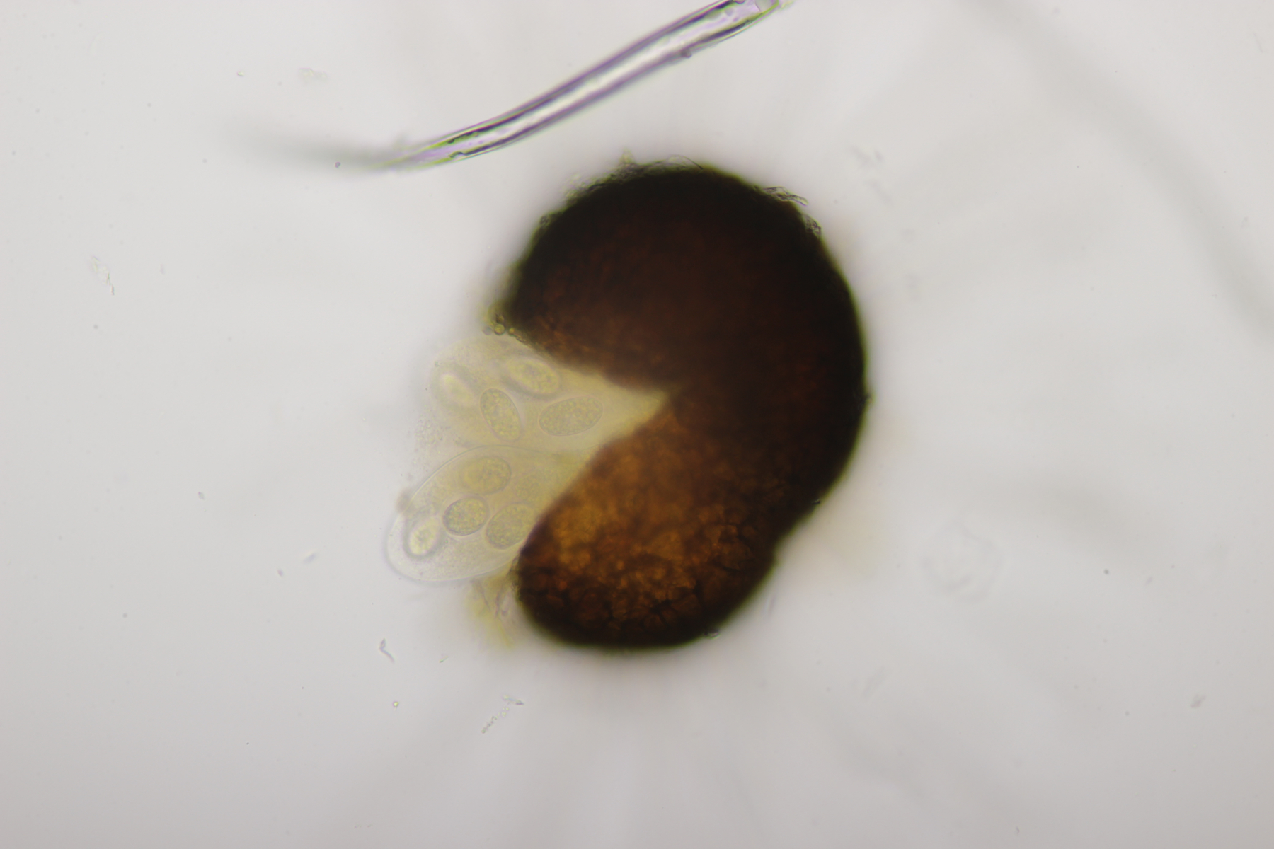 3. Weide meide gilt ja eigentlich in jeglicher Hinsicht, aber ich habe trotzdem einen Versuch gewagt. Die Fruchtkörper sind um die 170 µm groß, also genau im Überlappungsbereich von Erysiphe pseudoregularis und Erysiphe capreae. Erysiphe adunca würde ich wegen der Anhängsellänge ausschließen. Die Asci hatten dann durchgehend 5-6 Sporen, was für E. capreae sprechen würde.