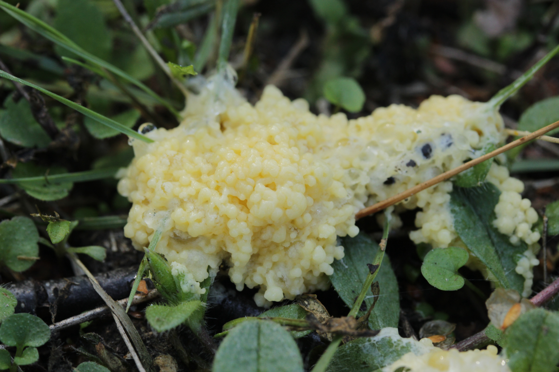 5. Hier würde ich auf Mucilago crustacea tippen. Seltsamerweise waren keine Sporen zu sehen, nur Kalkkristalle