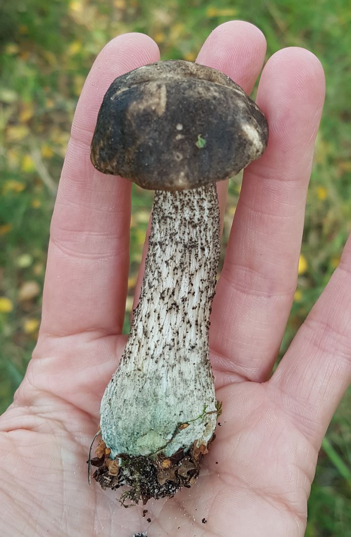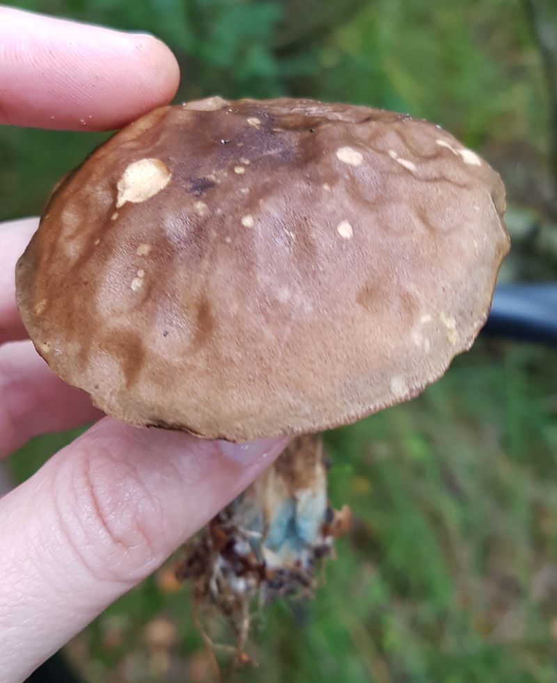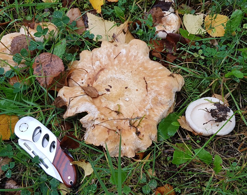 Das Klima wie gesagt ist so halb trocken, gerade hat es zu regnen begonnen und es soll die nächsten Tage auch noch so weitergehen. Von fast Allem ist ein bisschen was da (außer Saftlinge), aber nichts davon reißt einen zu Begeisterungsstürmen hin. Außer den unvermeidlichen Birkenpilzen, die auch nicht durch Enthusiasmus glänzen, fallen mir eigentlich Kahle Kremplinge auf.