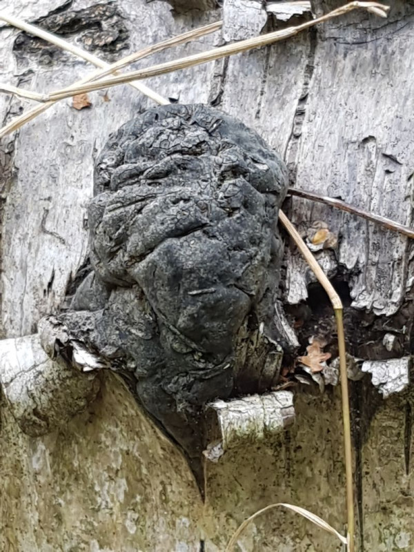 Aber was ist das hier für ein schwattes Geknubbel? Es befand sich an derselben Birke in der Nähe eines Zunderschwamms.