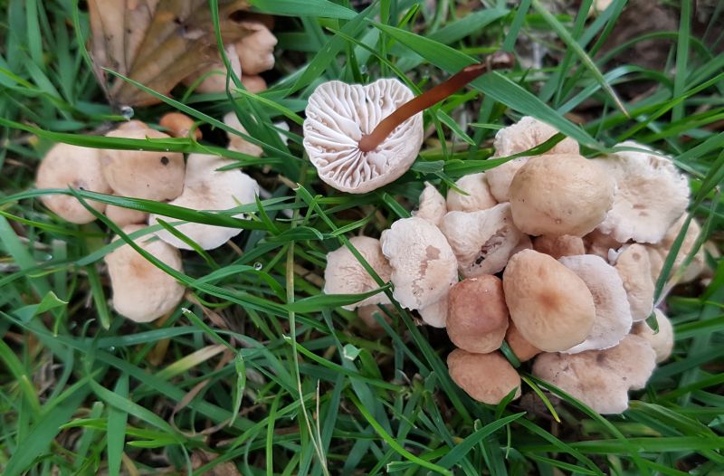 Grüße auch von den Nelkenschwindlingen. Sie bemühten sich, sich zu drücken, aber sie sind nicht zu übersehen. Der Deich ist schier von Ringen übersät wie eine Pfütze bei Regen.