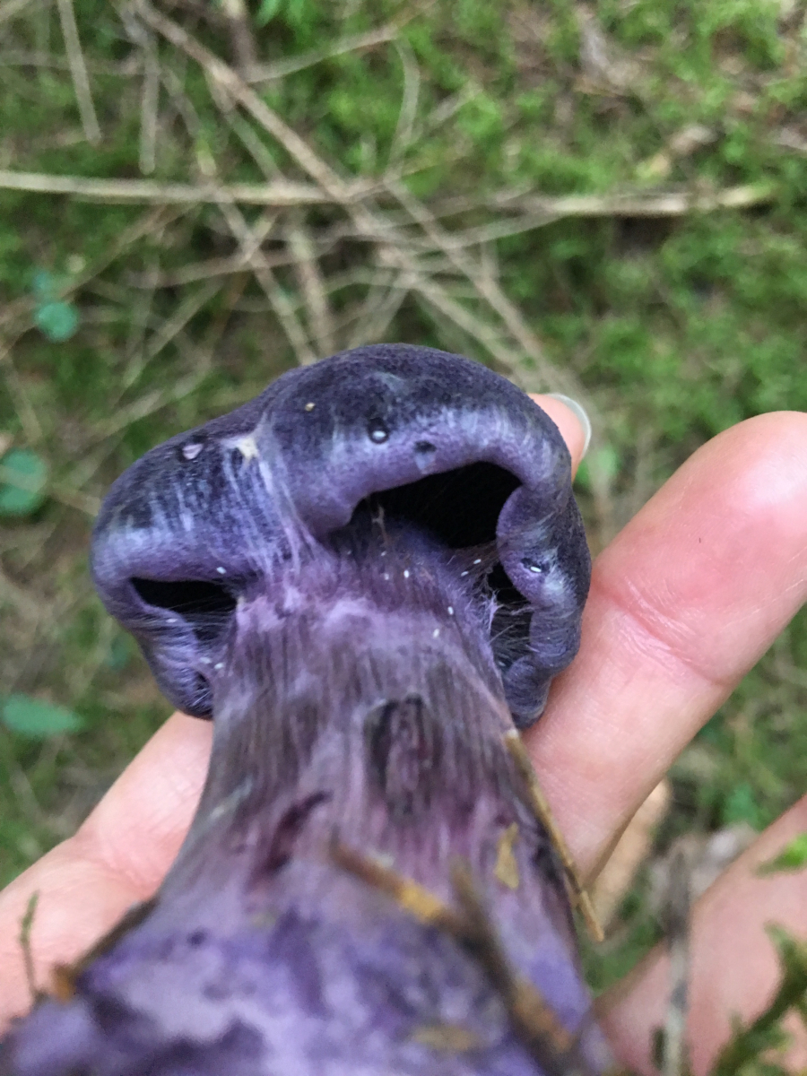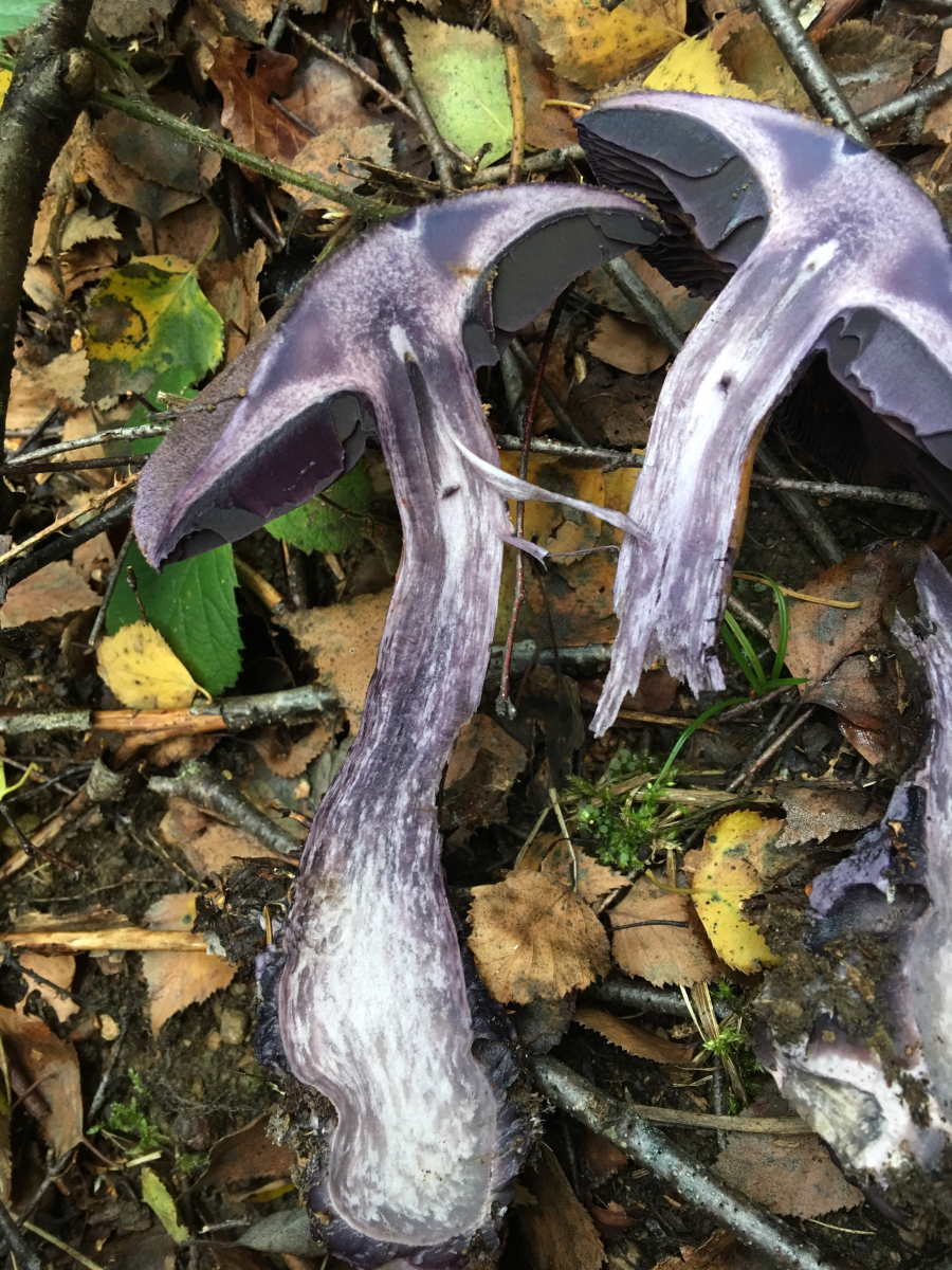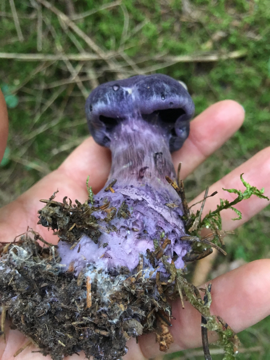 Aktuell stolpere ich immer wieder über diesen lilafarbenen Pilz und freue mich über den Farbklecks im Wald.
