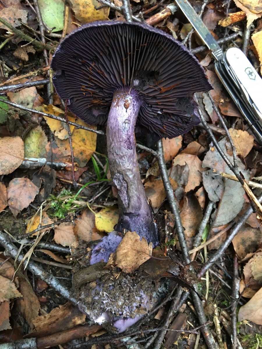 So von der Seitenansicht sieht das eigentümlich glatt aus. Dann müsste man achtpassen, denn es gibt wohl schon noch den einen oder anderen Schleierlingmit so extremer Färbung, aber eben glatter Huthaut. Wie zB die superviolette Form von Cortinarius purpurascens: