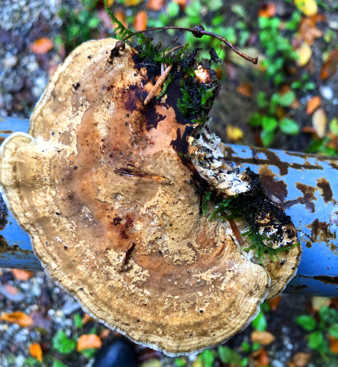 Die Tramete ist ca. 10 cm konsolenförmig und ca. 1,5 cm dick.