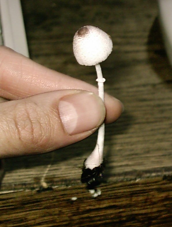 Diese Lamellen unter dem Hut waren weiß. Leider habe ich nur diese bilder. Den Fruchtkörper habe ich beim Entdecken sofort entsorgt. Rein interessehalber wüßte ich gern, was das ist. Jemand anderes, bei dem anscheinend der gleiche Pilz im Terrarium wuchs und der ihn darin beließ, erzählte mir, dass der fruchtkörper nach 24 h schon wieder quasi zu Kompost geworden war.