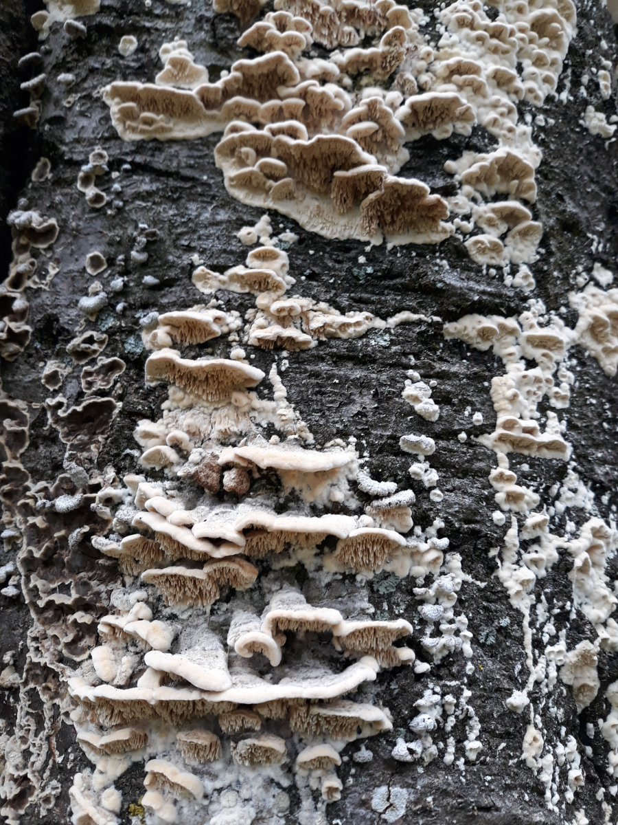 Makroskopisch wäre mein erster gedanke da Irpex lacteus (Milchweißer Eggenpilz). Mit minimaler Chance, daß mikroskopisch Steccherinum oreophilum (Berg-Resupinatstacheling) raus kommt.LG; Pablo.